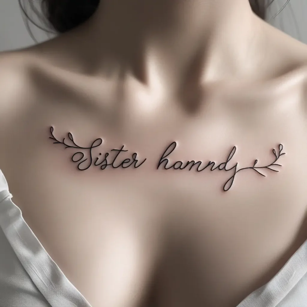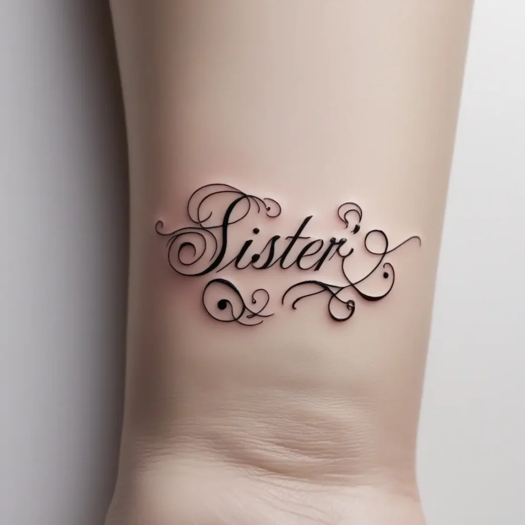 Personalized Description: A beautifully written version of your sister’s name in elegant script on your wrist, side, or chest.