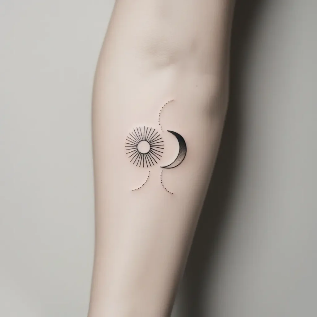 Tattoo Meaning: The sun and moon represent complementary forces, just like the bond between two sisters—complete, even when they are different.