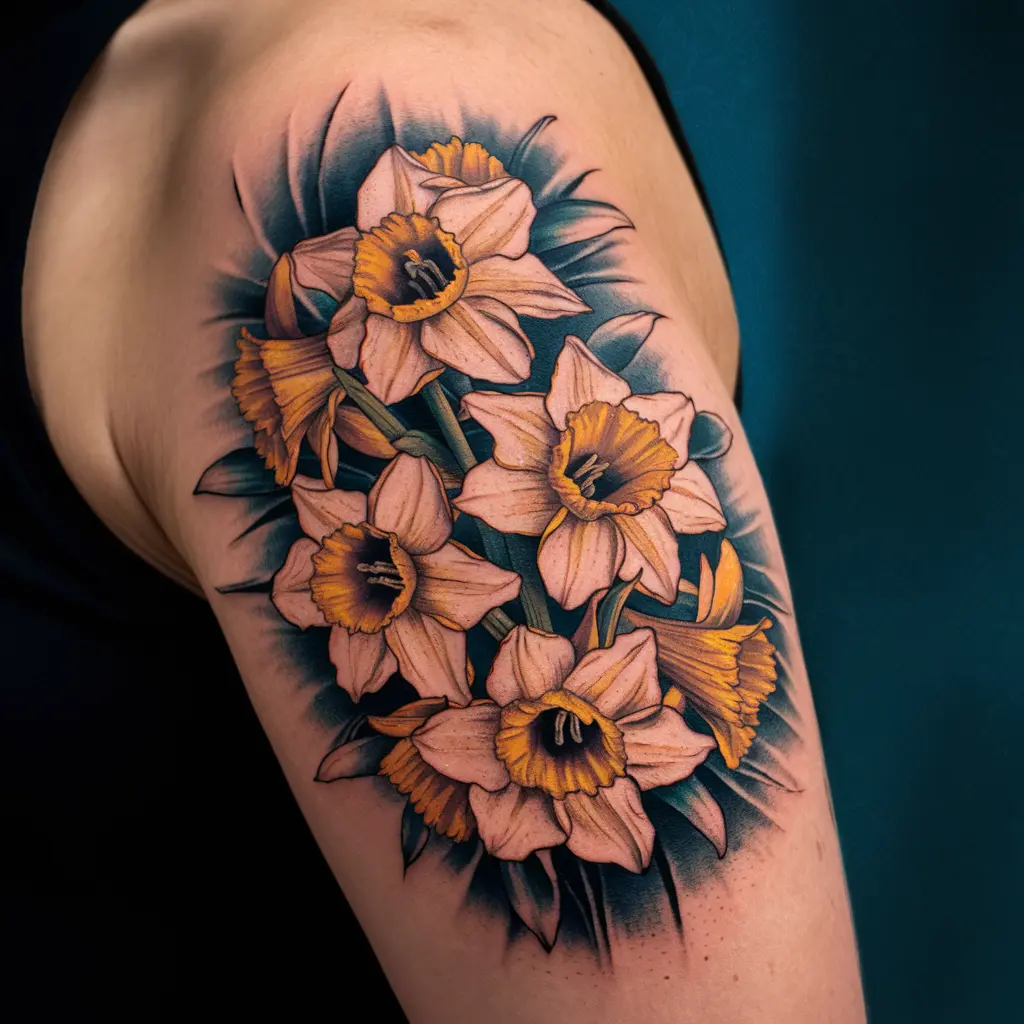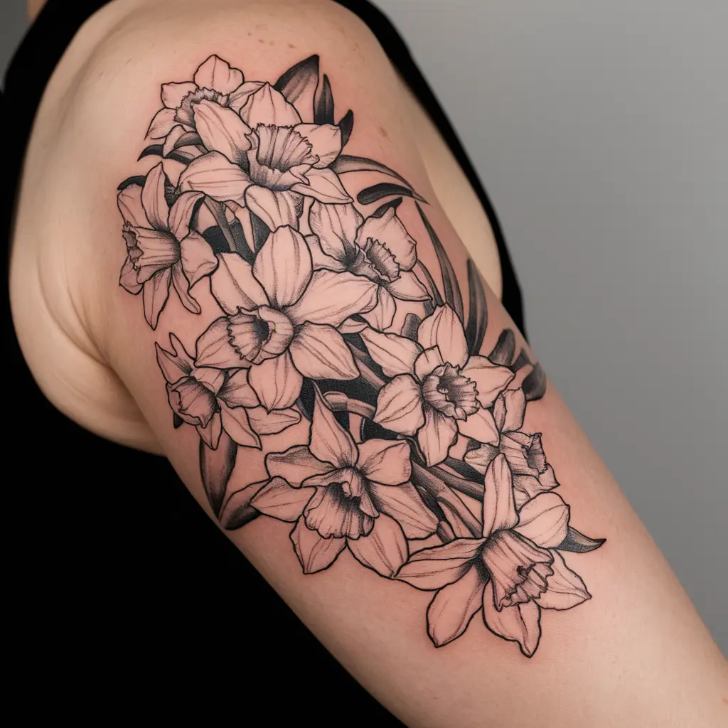 This design features a collection of daffodils, often wrapped around the arm or leg like a bracelet or sleeve. It’s a great option for someone who wants to make a bigger statement and showcase their love for spring flowers.