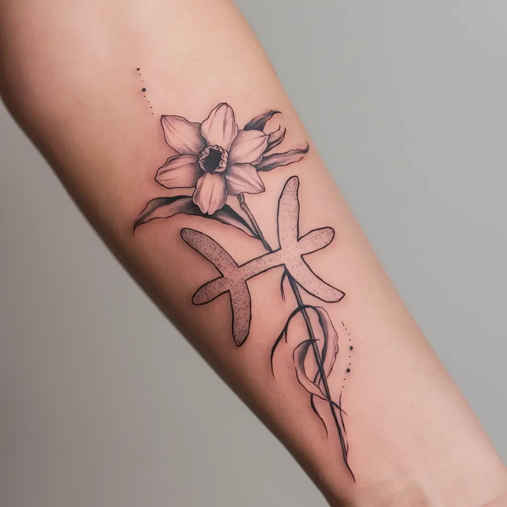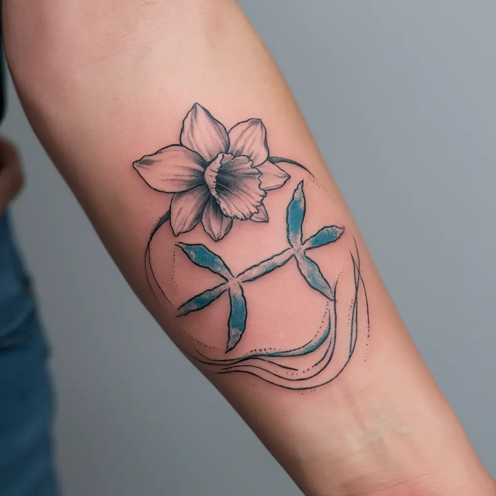 If you’re into astrology, you could combine the daffodil with your zodiac sign. Since March is shared by Pisces and Aries, you could incorporate their symbols alongside a daffodil flower. This tattoo combines two important aspects of your identity—your birth flower and your star sign.