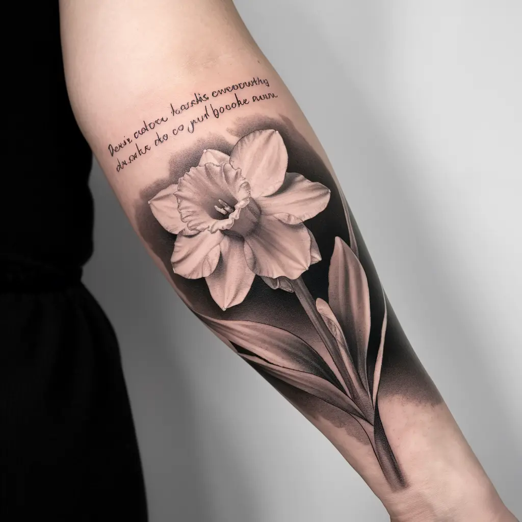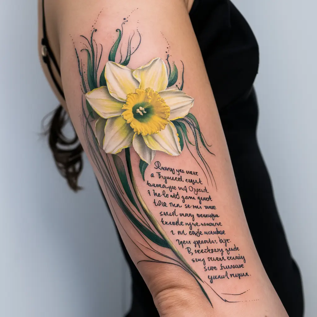Pairing a daffodil tattoo with an inspirational quote is a great way to add depth to the design. Whether it’s about spring, new beginnings, or hope, the daffodil complements any positive words beautifully.