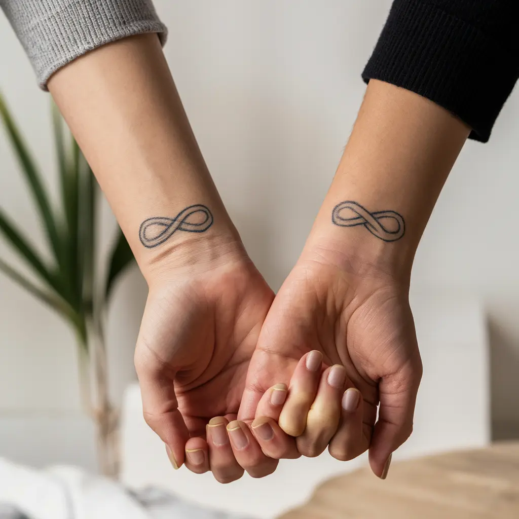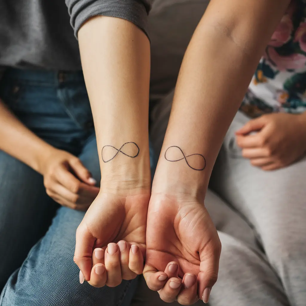 Meaning: Symbolizes eternal friendship and a connection that lasts forever. Placement: Wrist, finger, or side of the ribs. Why I love it: The infinity symbol is simple yet profound, reminding you both that your bond is forever.