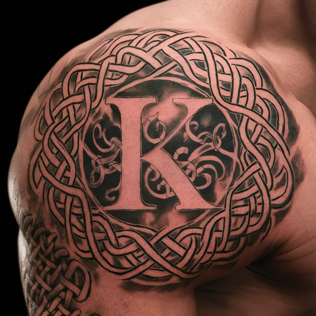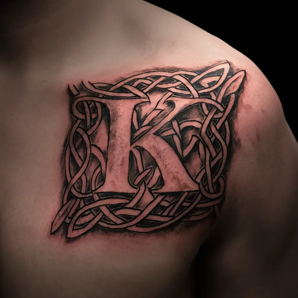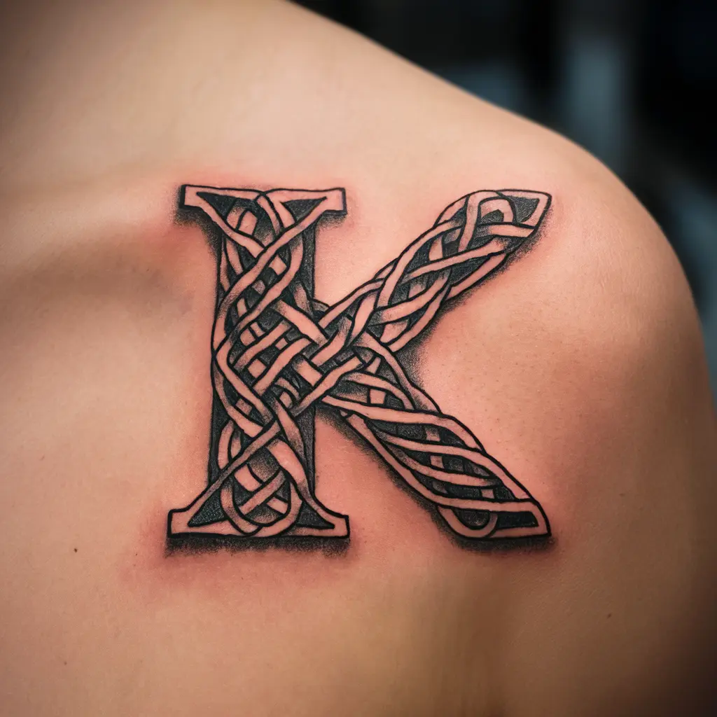 A Celtic “K” tattoo is designed with intricate knotwork and patterns, which gives it an ancient and timeless look. The knots in the tattoo symbolize interconnectedness and eternity.