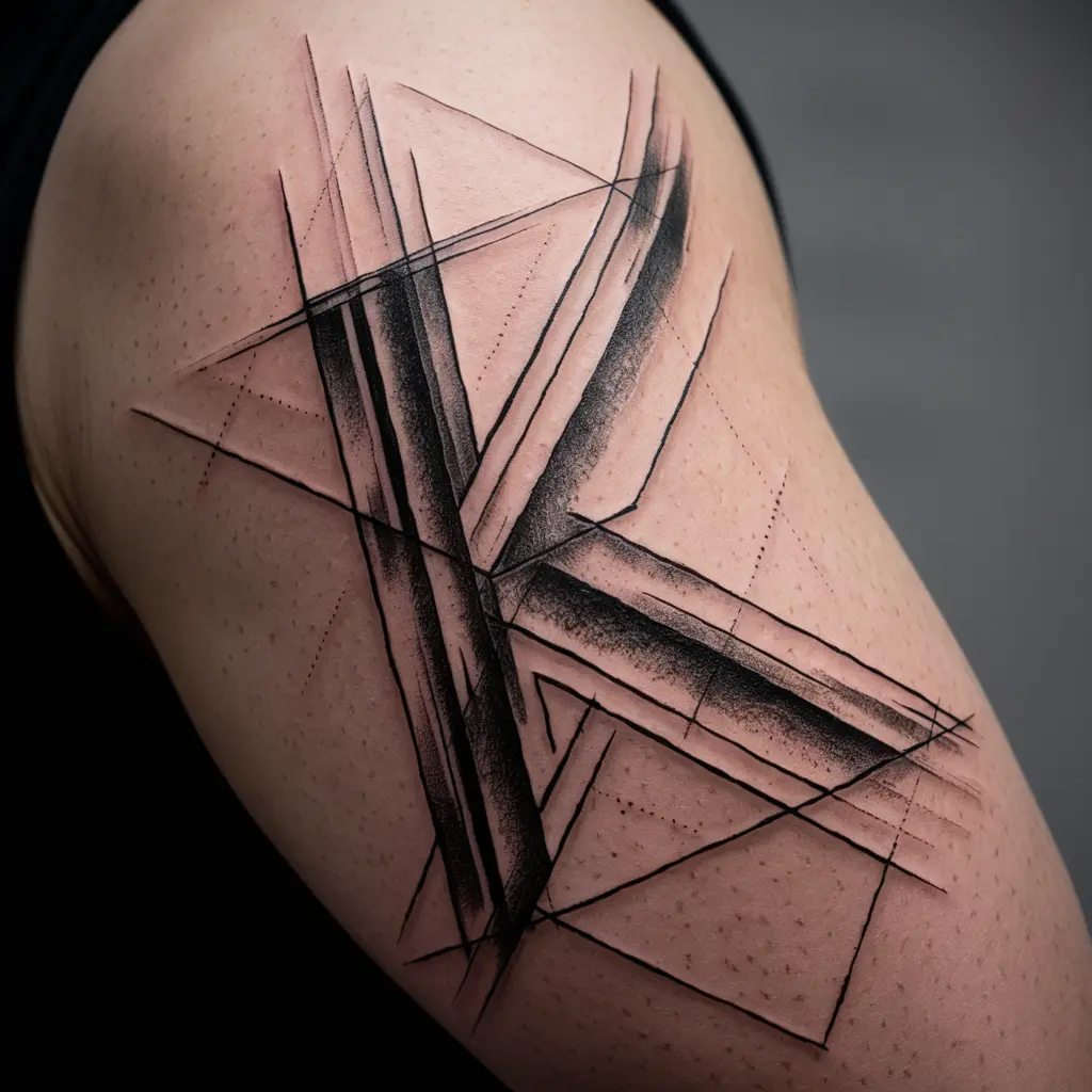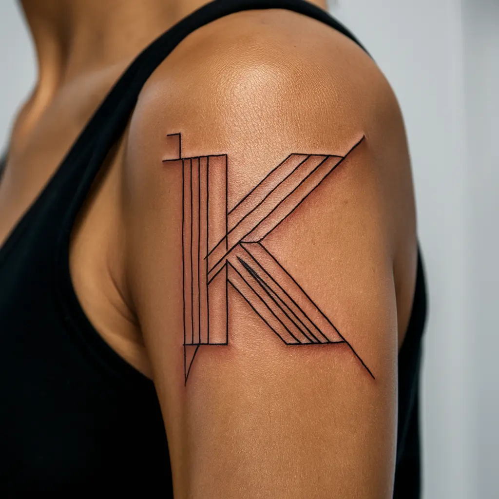A geometric “K” tattoo incorporates sharp lines, triangles, and other geometric shapes into the design of the letter. This modern, edgy look can be both symmetrical and abstract.