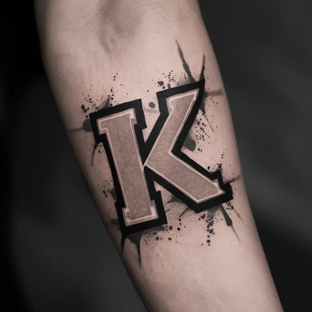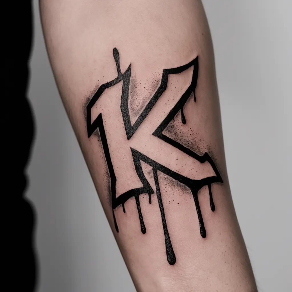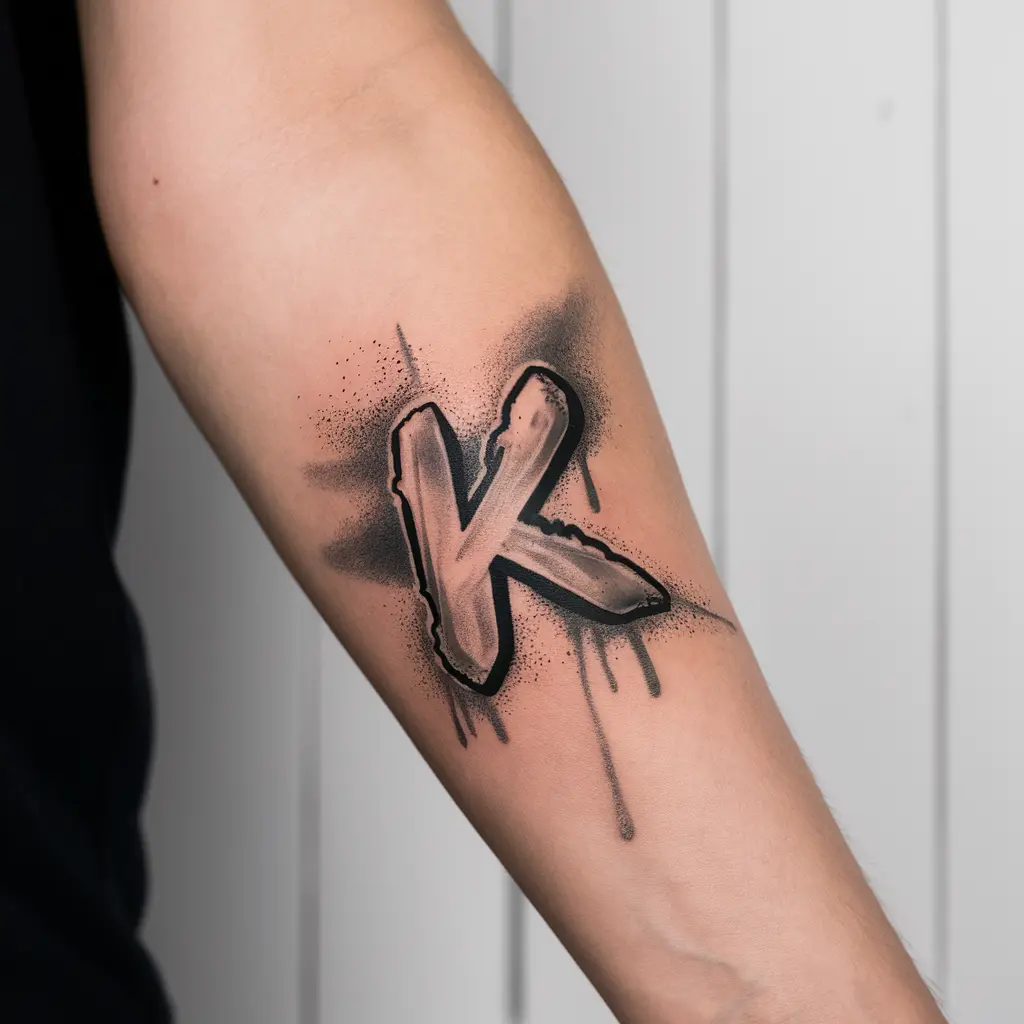 If you’re into street art, a graffiti “K” tattoo could be the perfect choice. The bold spray paint drips and urban design reflect creativity, rebellion, and freedom