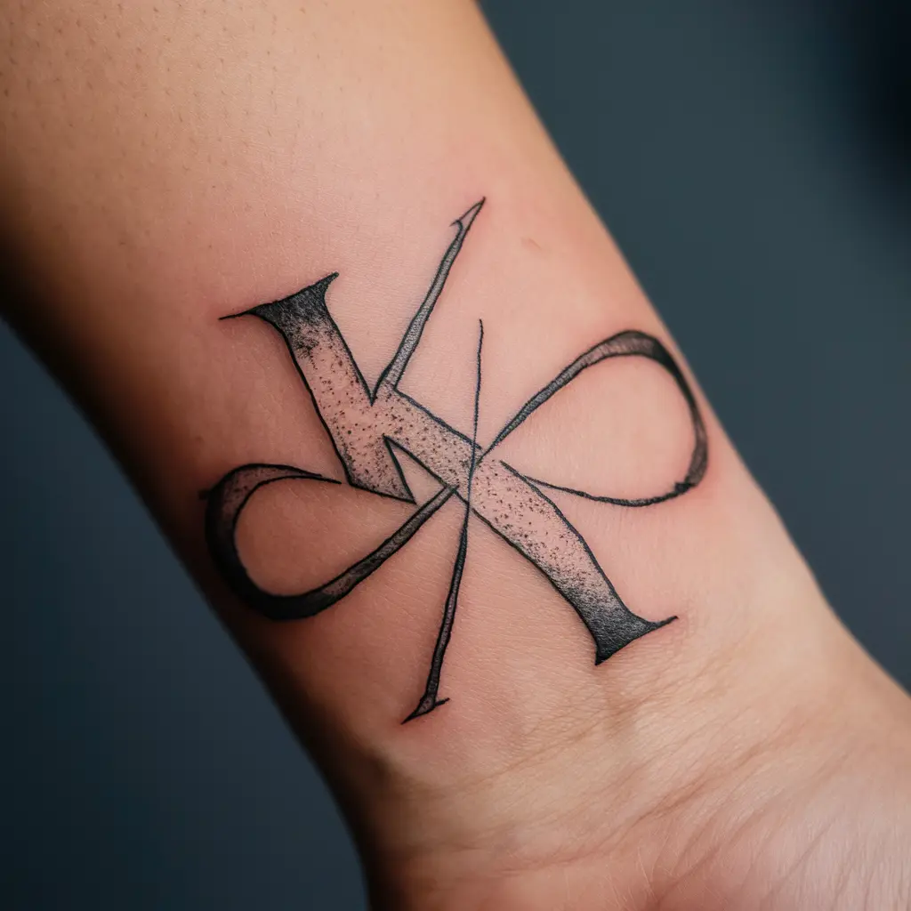 The “K” is merged with an infinity symbol, which represents endless love, life, or connection. This tattoo signifies something that has no end.