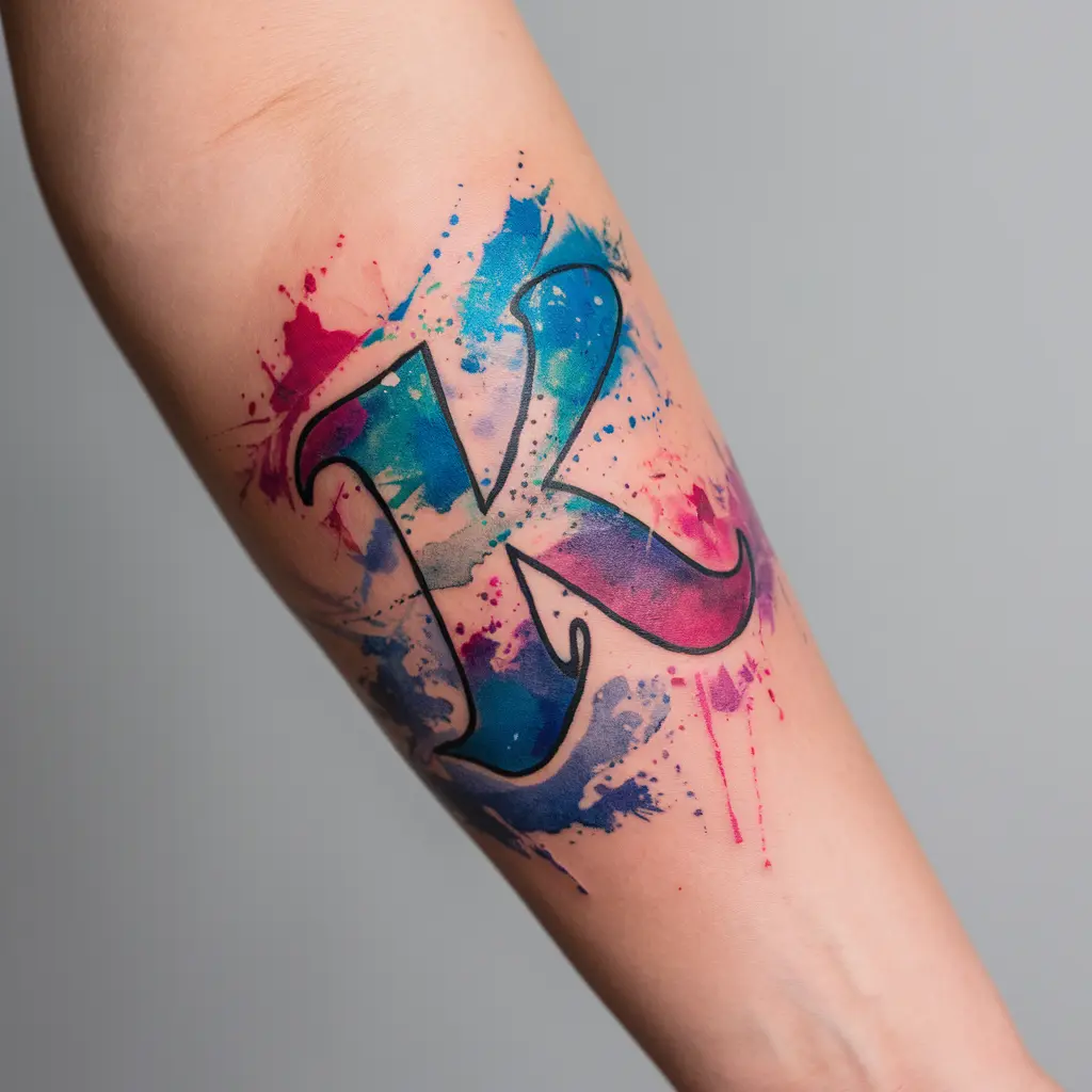 Watercolor K Tattoo