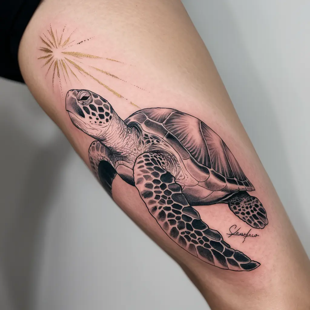 Tattoo Meaning: Sea turtles are symbols of patience, endurance, and long life. They remind us to take our time and enjoy the journey.