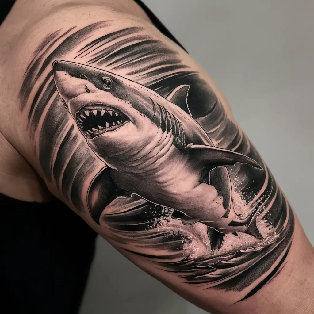 The powerful image of a shark in mid-chase can be a dramatic tattoo. Sharks represent strength, power, and fearlessness.