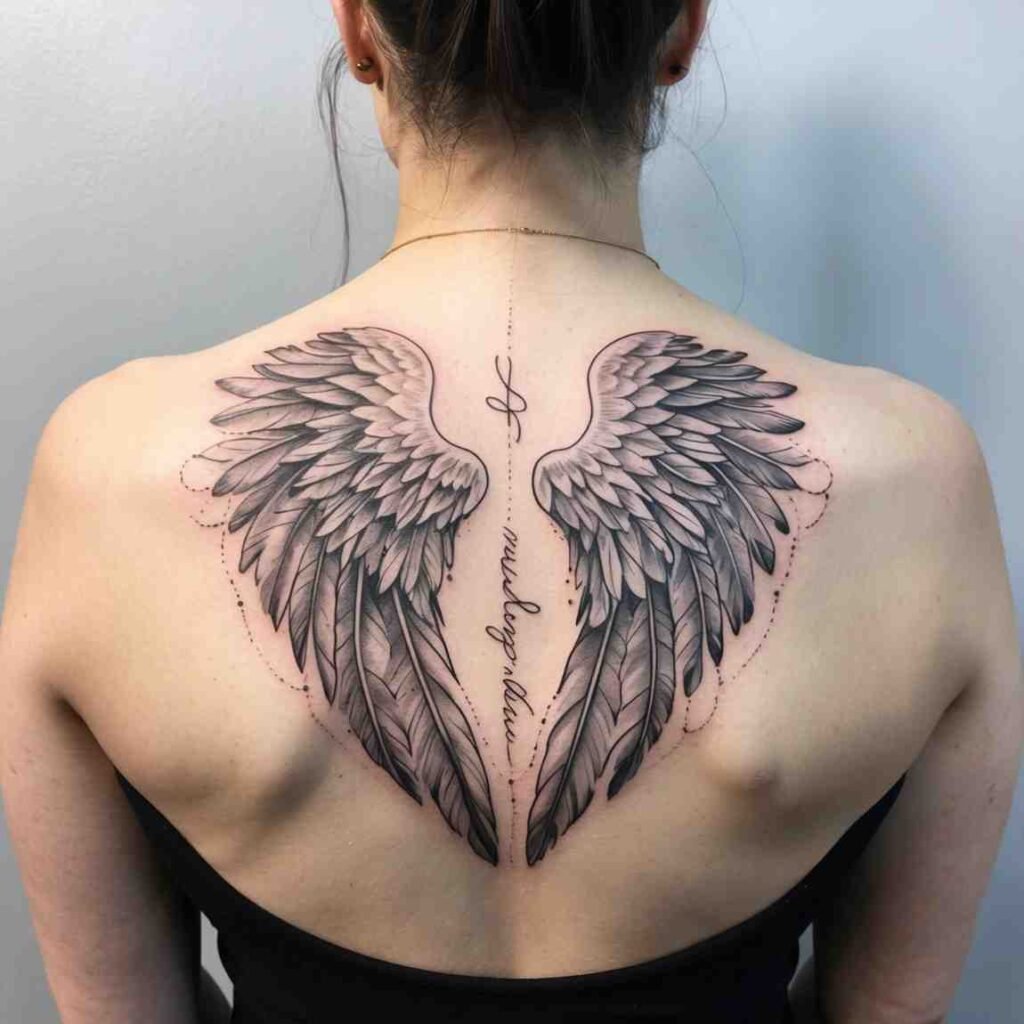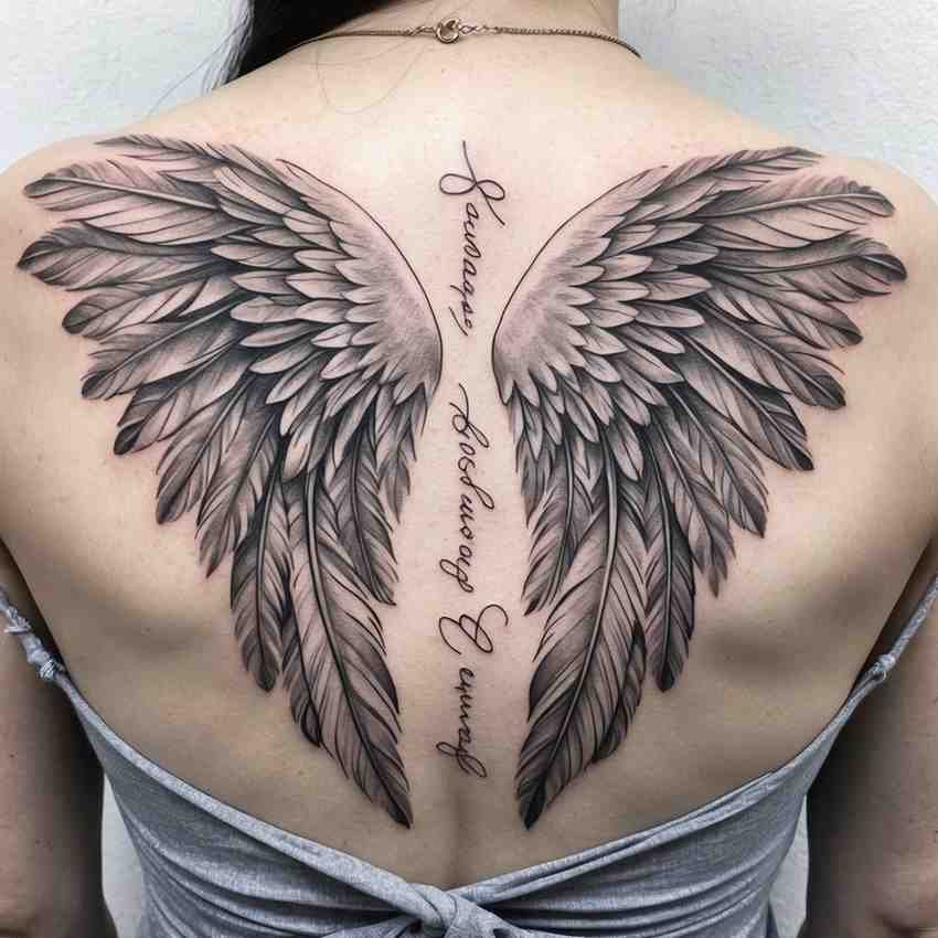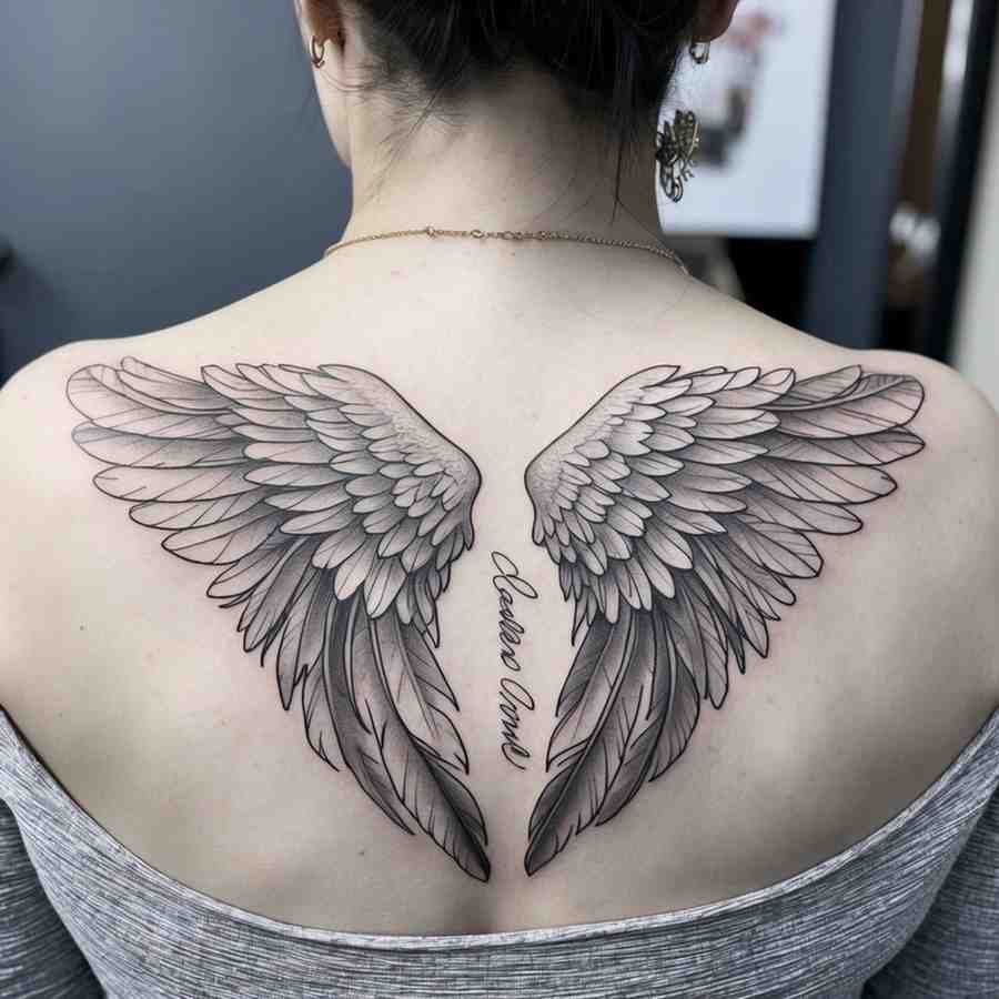 Angel wings symbolize protection and the ascension of a loved one’s spirit. They can be paired with a name, date, or a personal message to create a touching tribute.