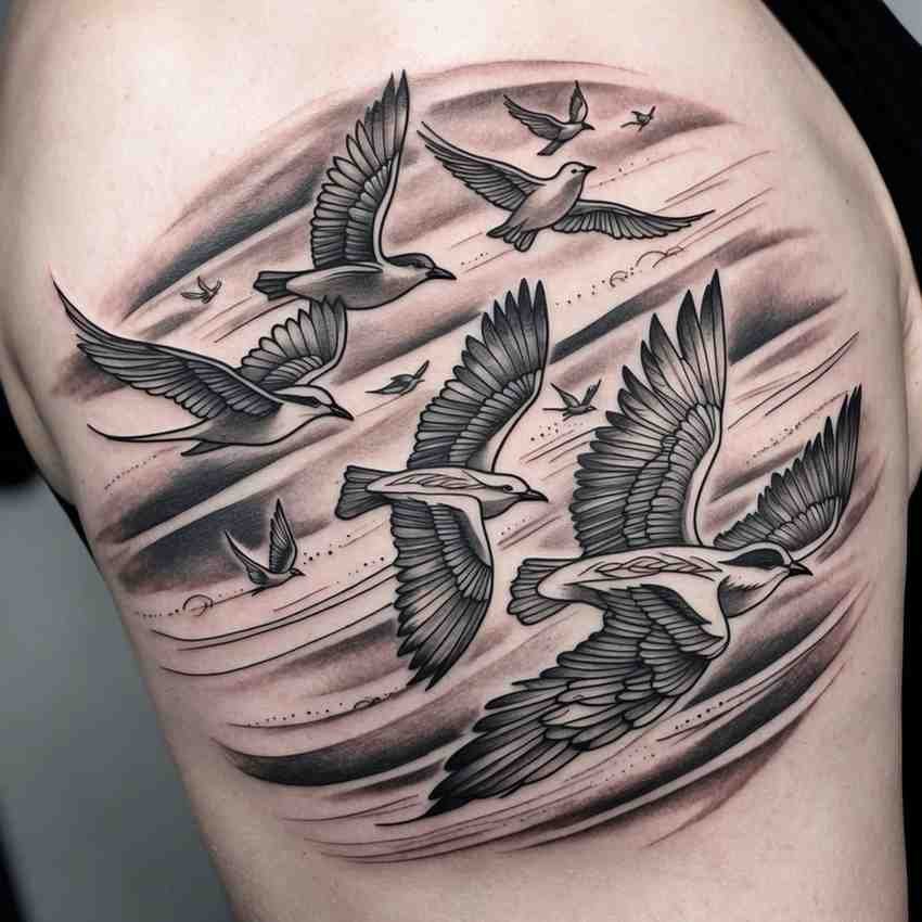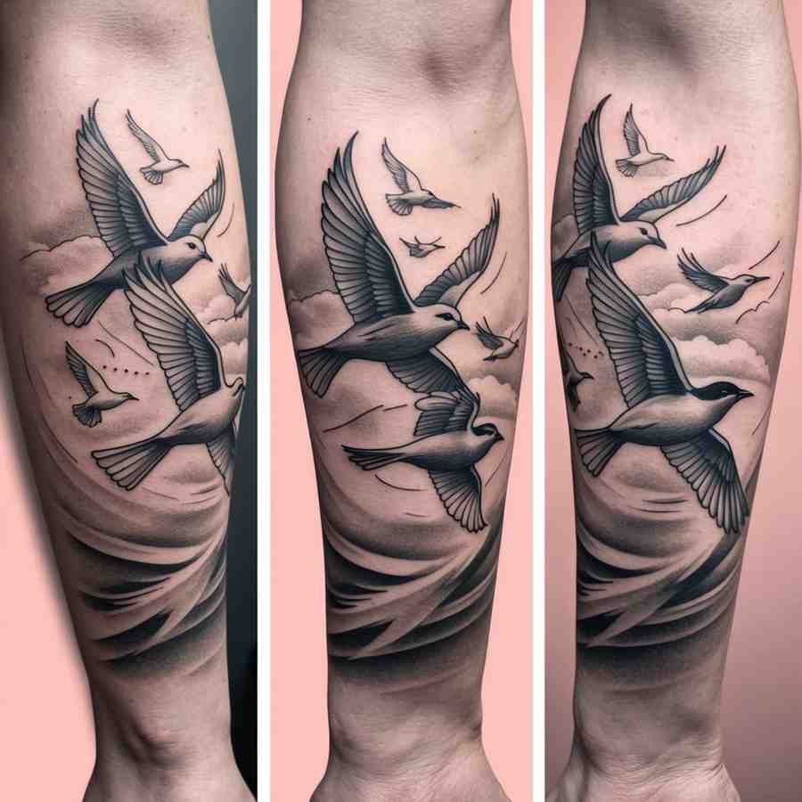 Birds in flight can signify freedom and the soul’s journey to heaven, a comforting image of your loved one at peace.