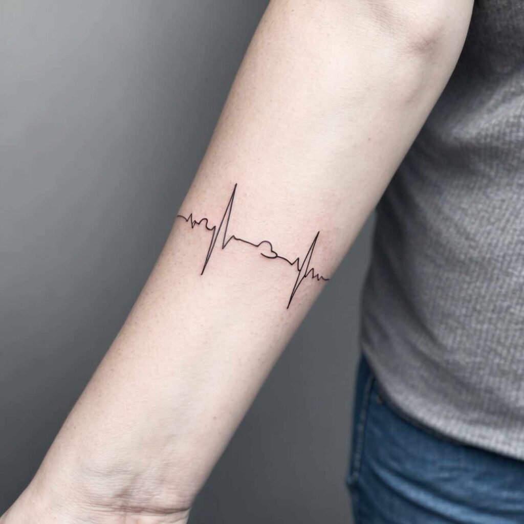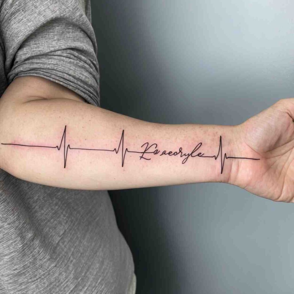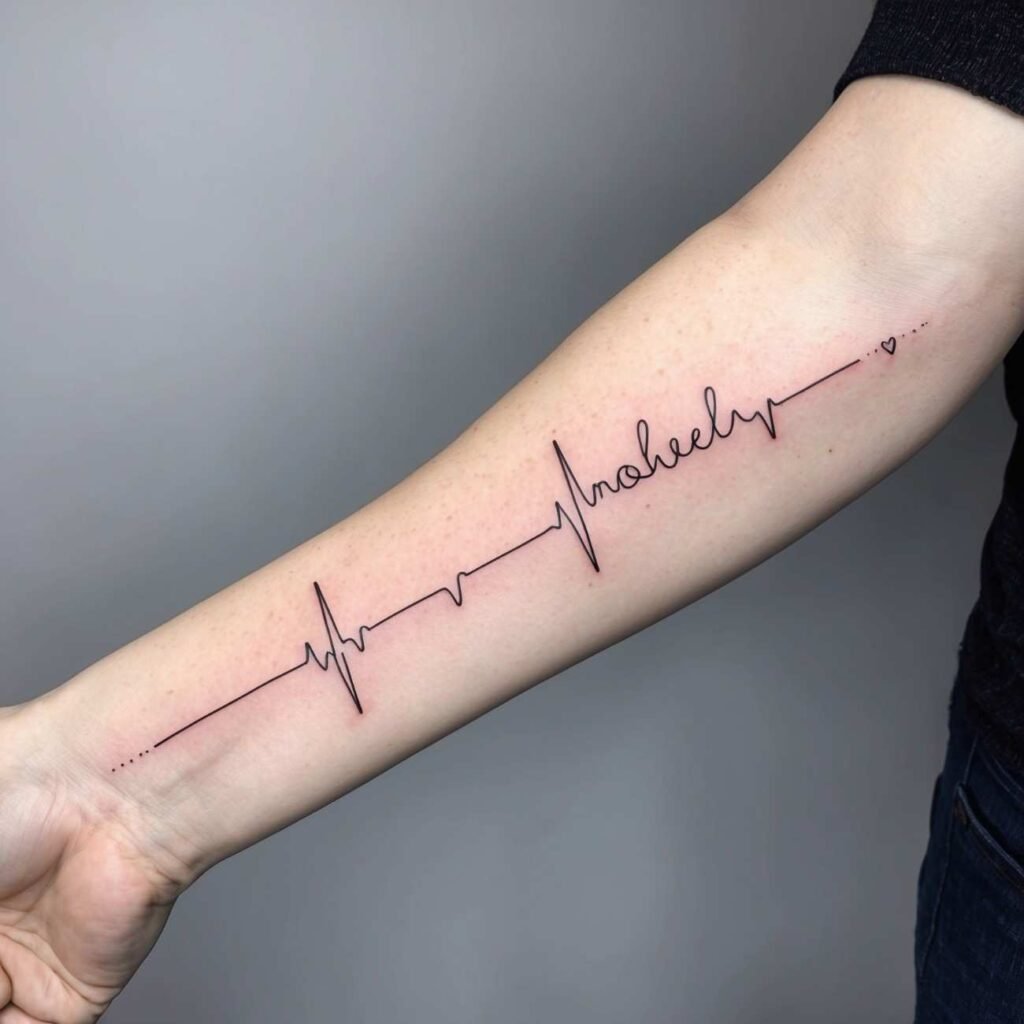 A heartbeat line represents life and continuity. Incorporating your loved one’s name into the design signifies that they continue to live on in your heart.