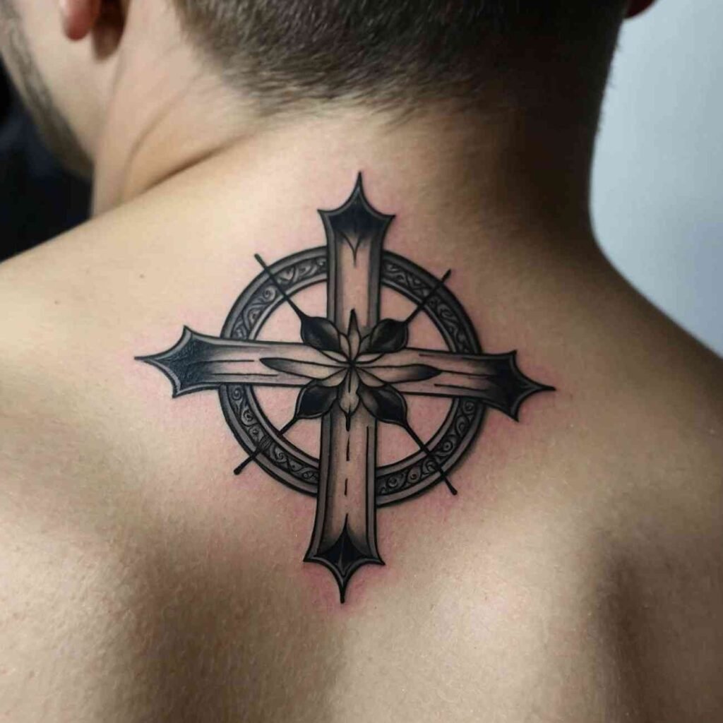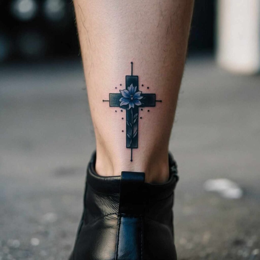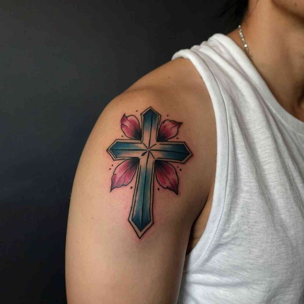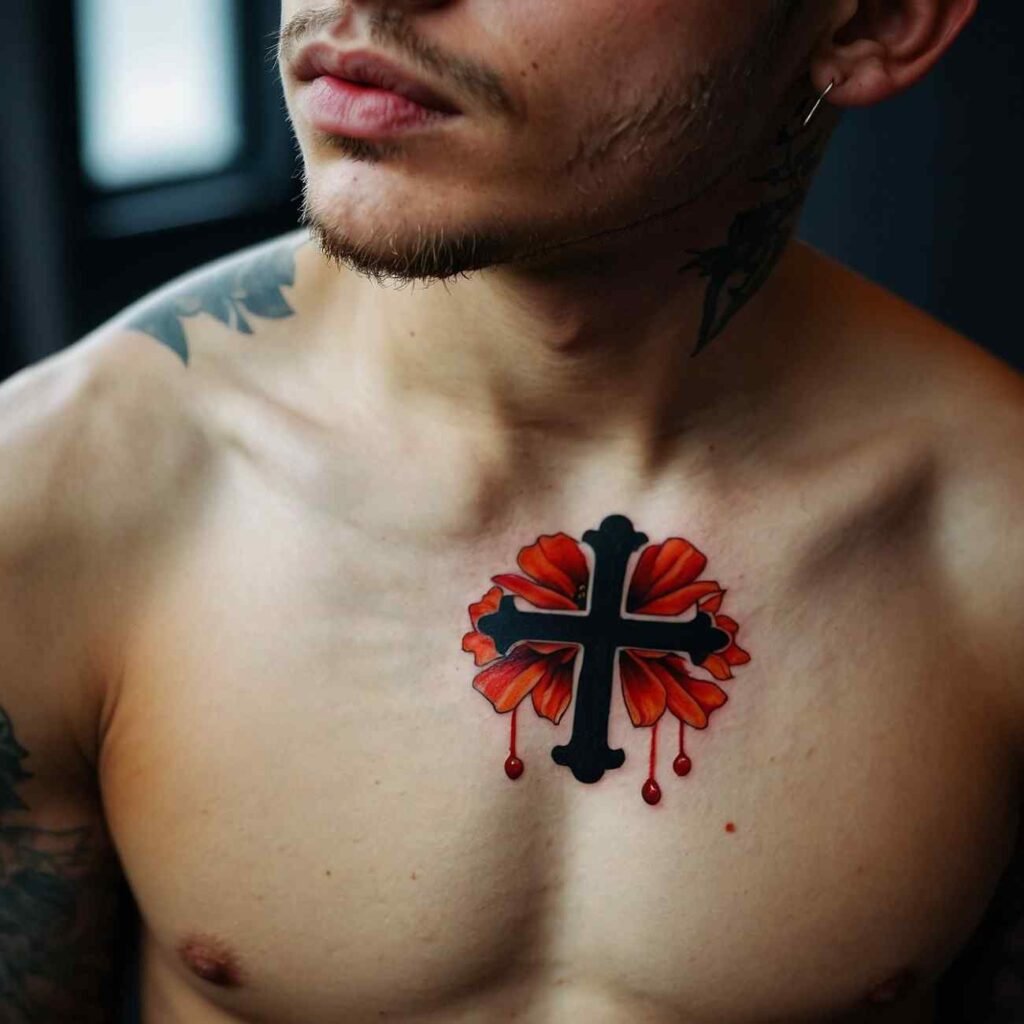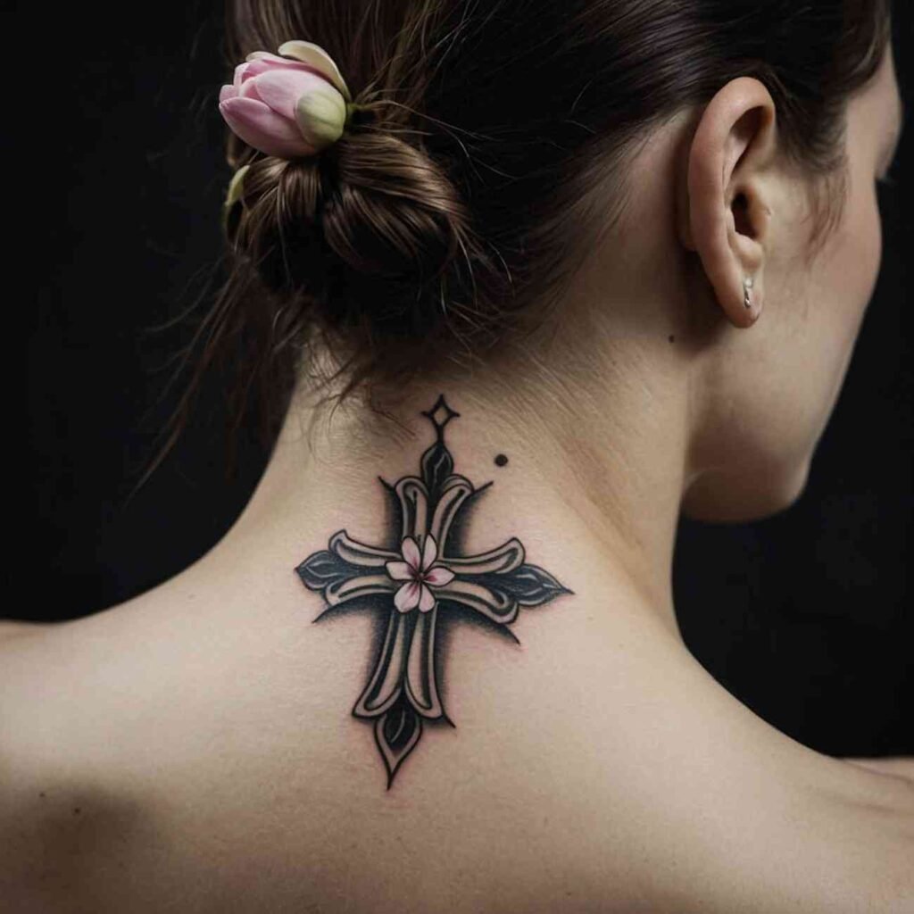 This tattoo style is perfect for those who want to carry a piece of their faith, blended with the natural beauty of flowers. The cross brings spiritual meaning, while flowers add a touch of softness and individuality to the design.