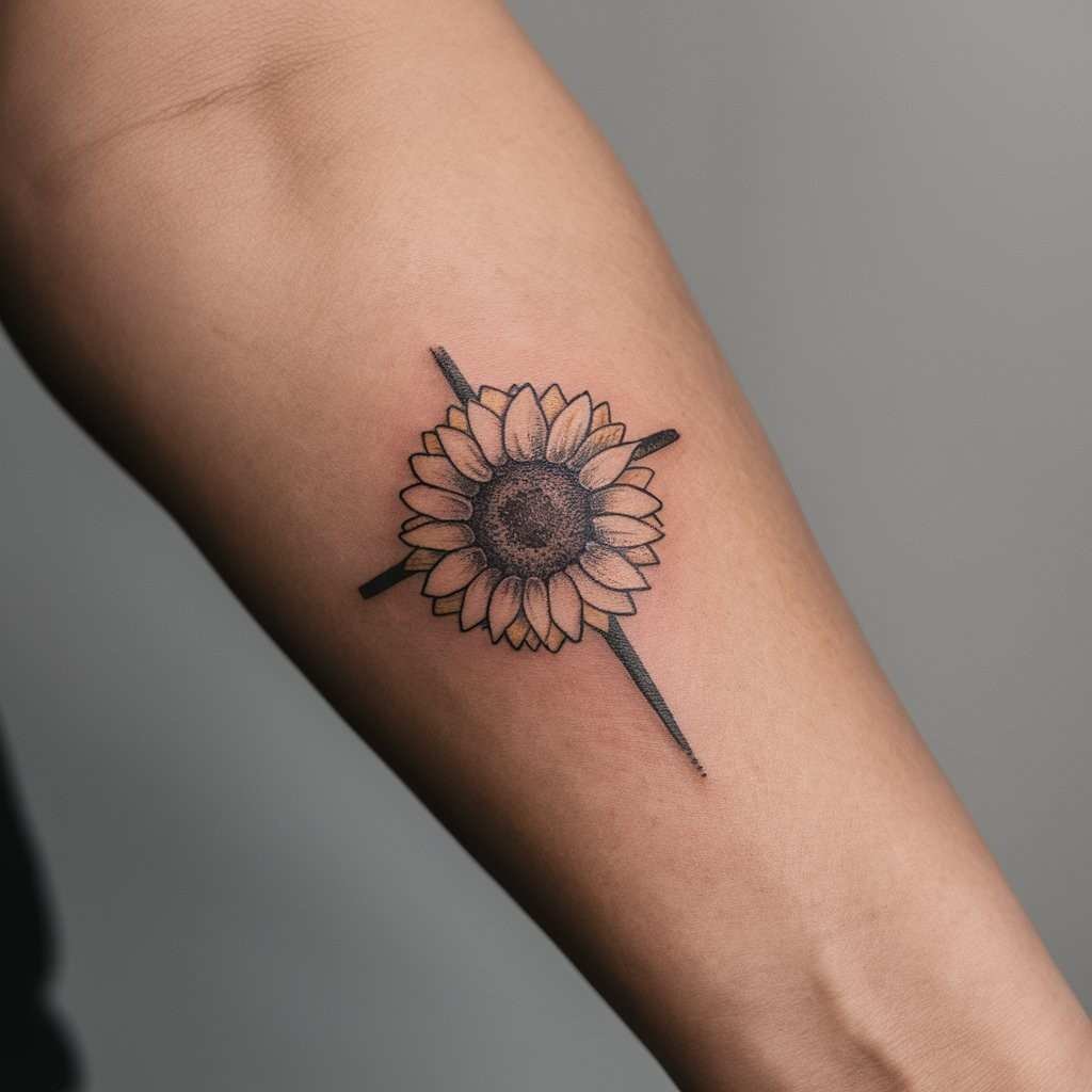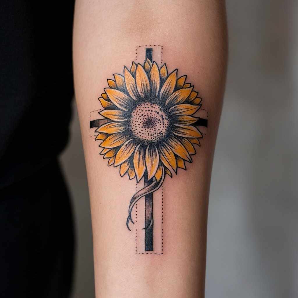 Sunflowers, known for turning towards the sun, represent loyalty and positivity. A cross tattoo with sunflowers can be a beautiful reminder to keep faith, stay optimistic, and follow the light, no matter how dark life may seem.