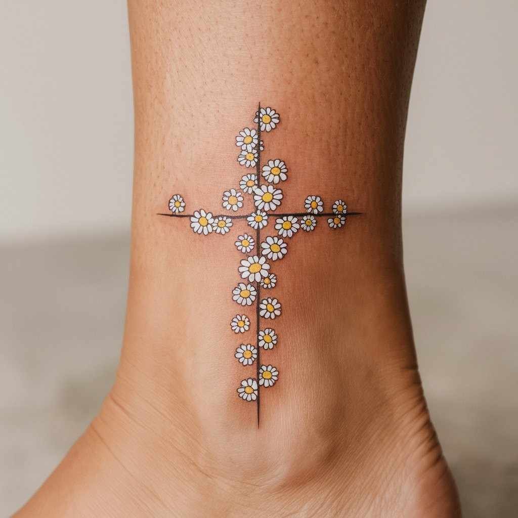 1. Daisy Cross Tattoo