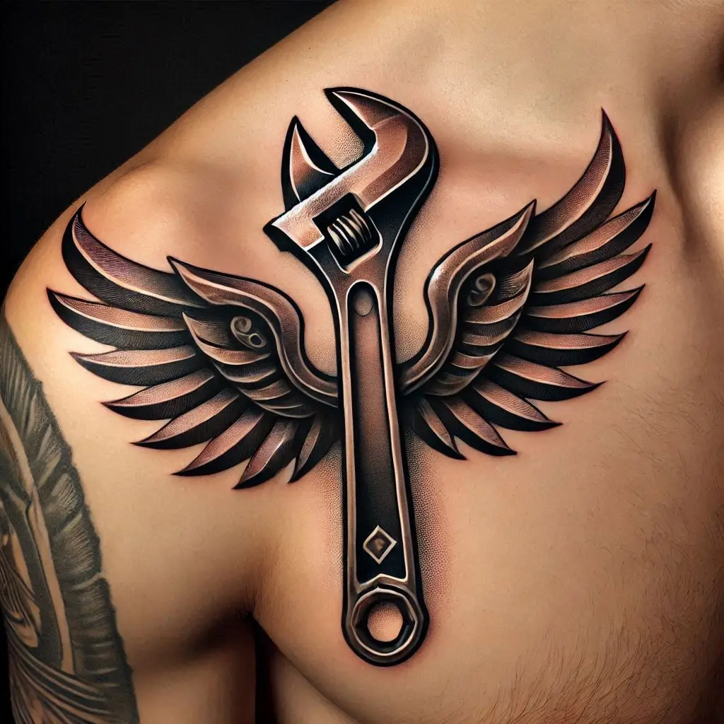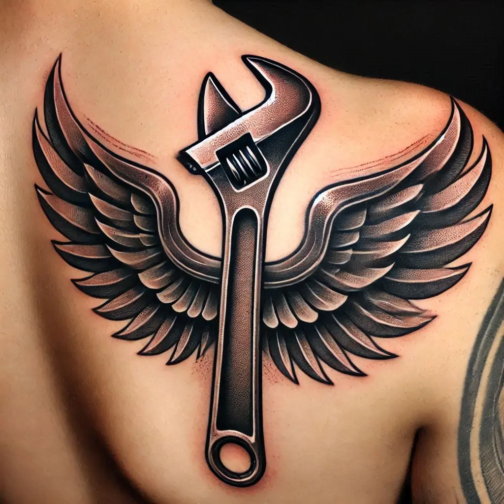 Description: A wrench with stylized wings adds a creative twist to a classic tool.