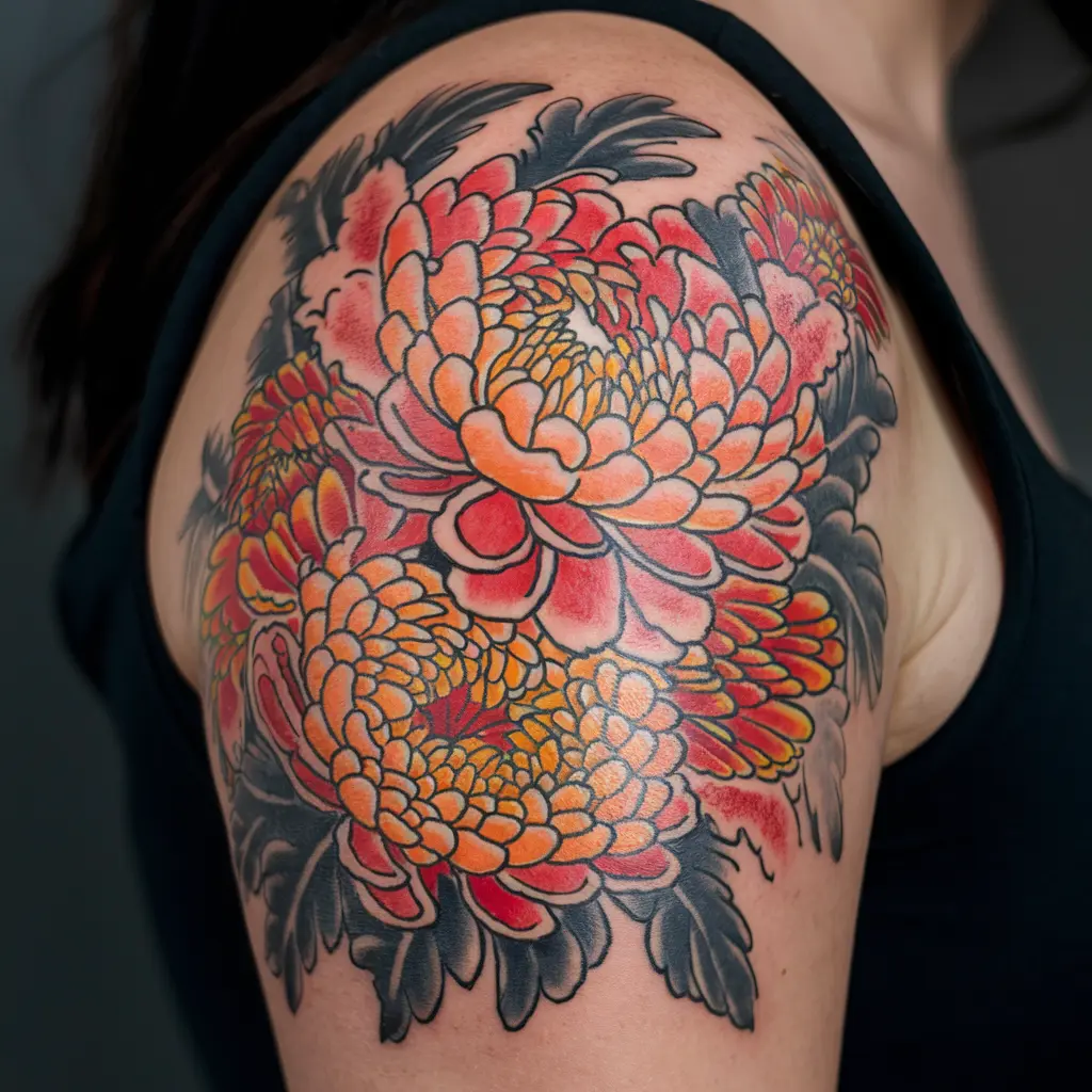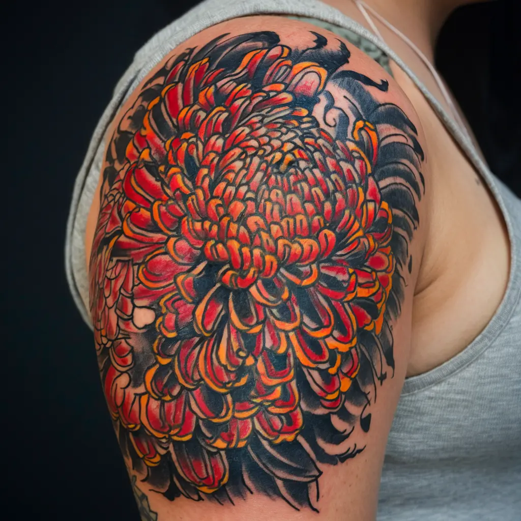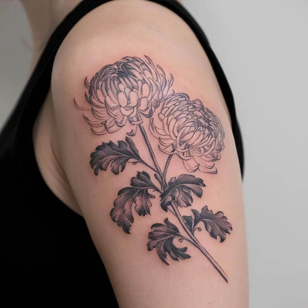 Tattoo Meaning: Chrysanthemums in traditional tattoos represent resilience and strength.