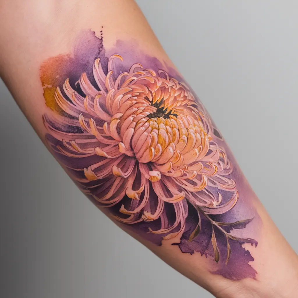 Watercolor Chrysanthemum Tattoo