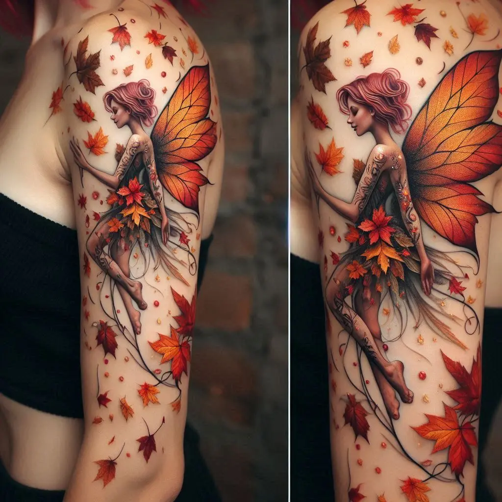 Tattoo Meaning: The autumn fairy represents the cyclical nature of life, where every ending brings the possibility of a new beginning. It symbolizes transformation, change, and beauty in impermanence.