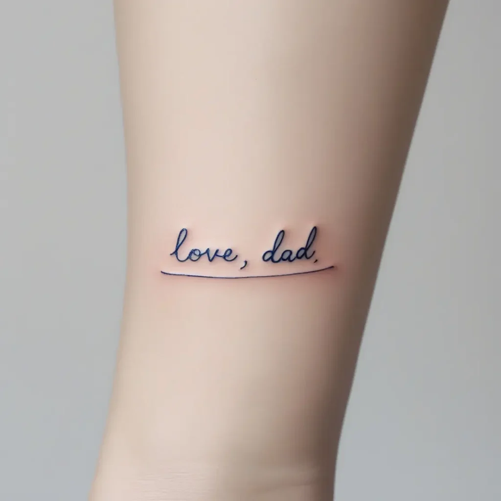 Description: A simple tattoo of your dad’s handwriting—perhaps his signature, a phrase he often said, or even “Love, Dad” from an old letter.
