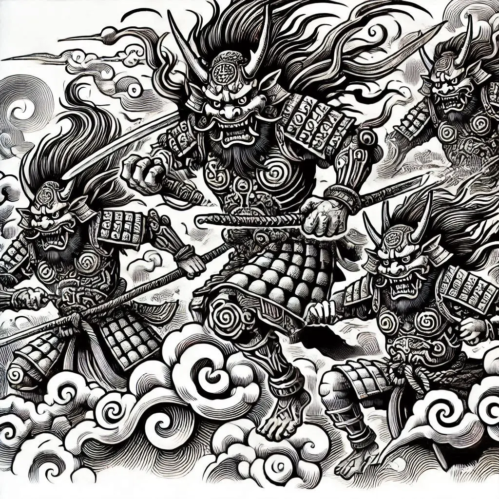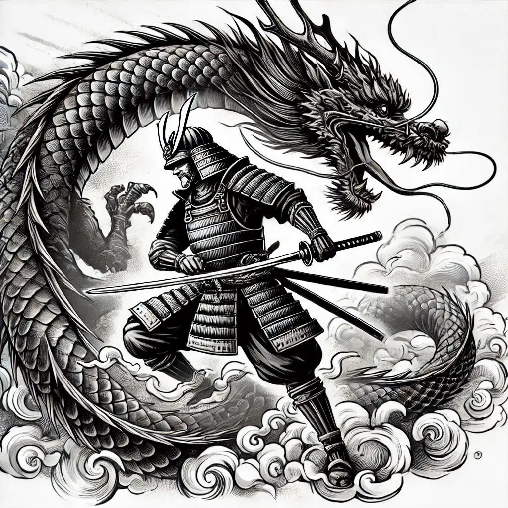 Dragons in Japanese mythology are powerful symbols of strength, wisdom, and protection. A samurai battling a dragon represents the eternal struggle between good and evil.