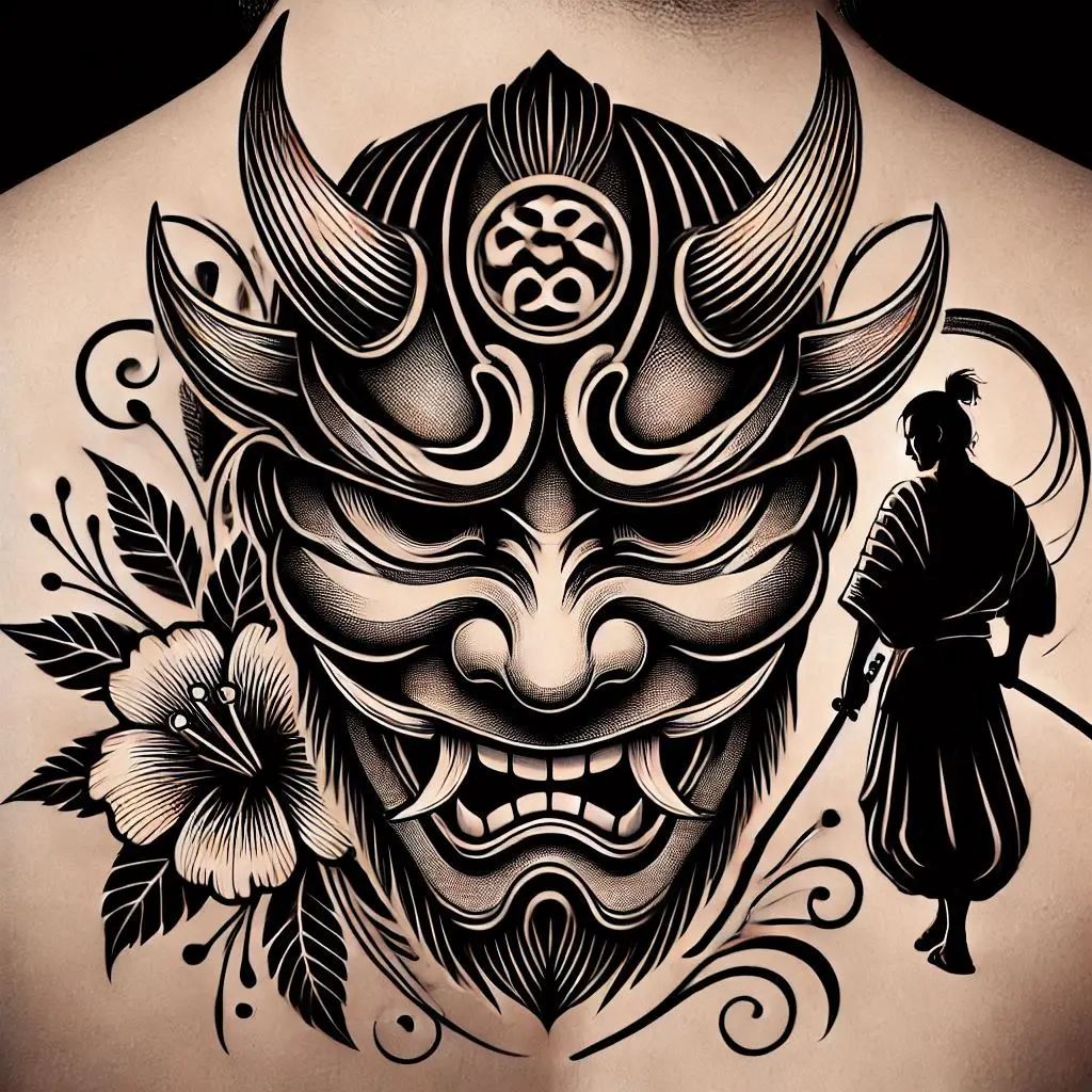 Why I love it: The Hannya mask adds depth and emotion to the samurai tattoo, creating a unique combination of myth and power.