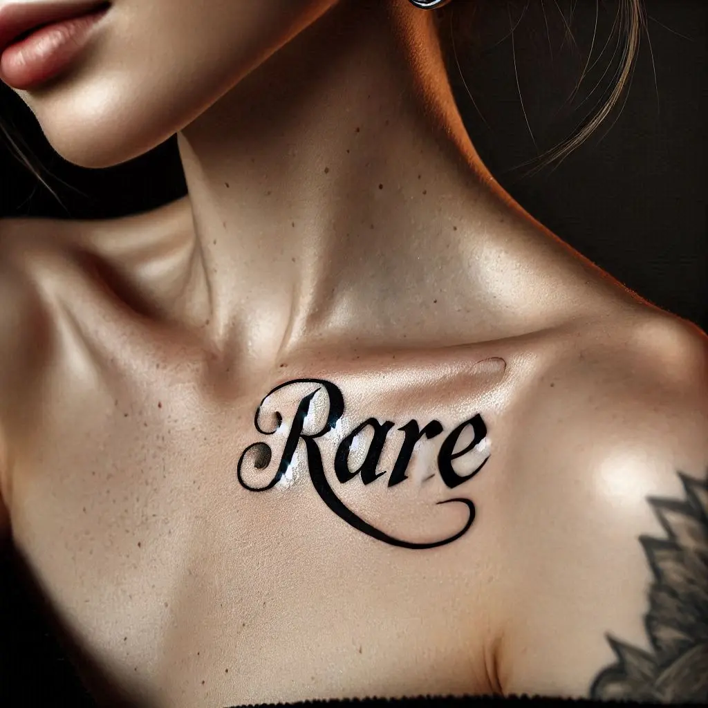 Meaning: Having “Rare” on your chest signifies self-love and embracing your unique story. It’s a powerful placement for a powerful word.