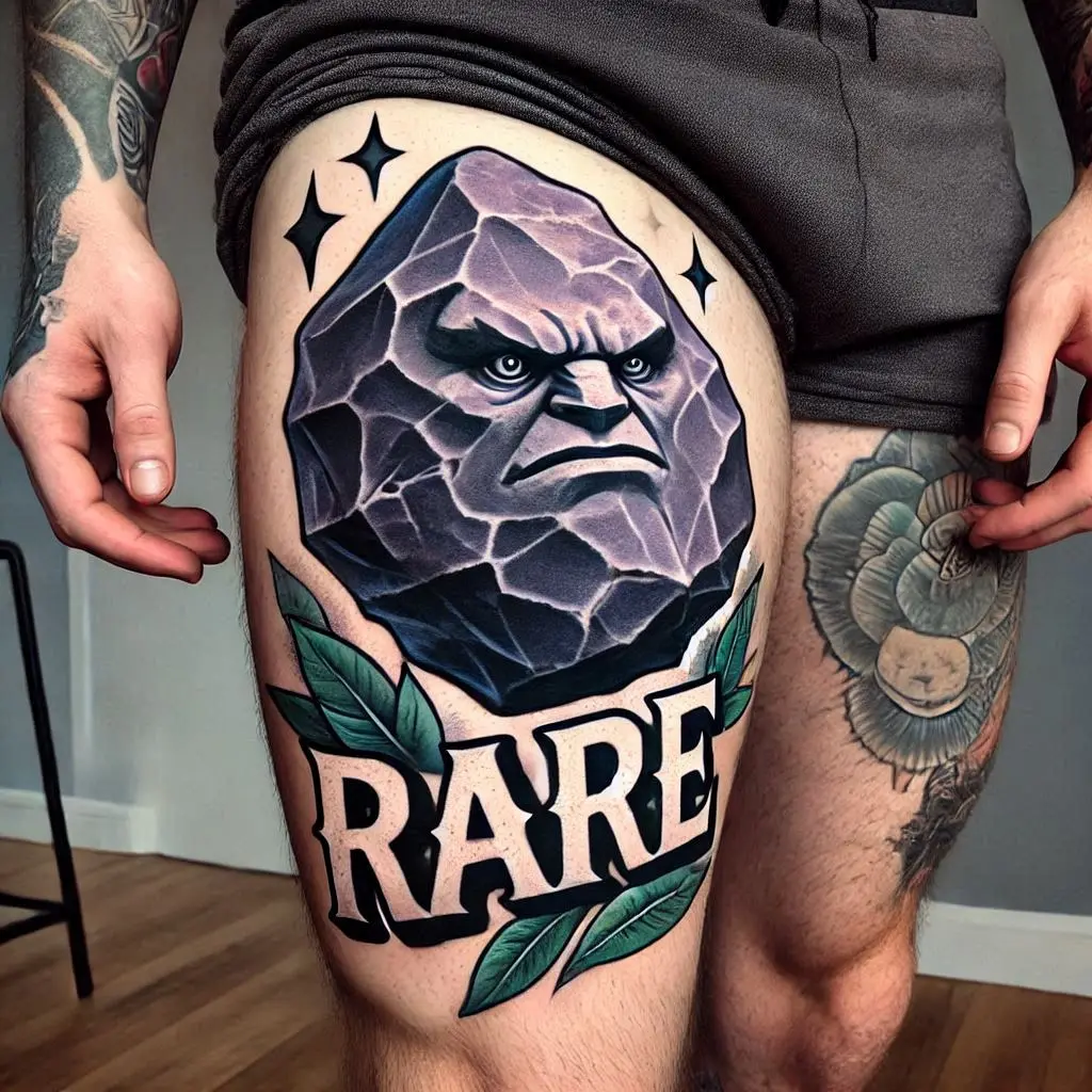 The word “Rare” symbolizes uniqueness, beauty, and value—qualities that we often see in ourselves or strive for. Whether you want it as a reminder of your individuality or as a tribute to someone you love, this tattoo speaks volumes with just four letters.