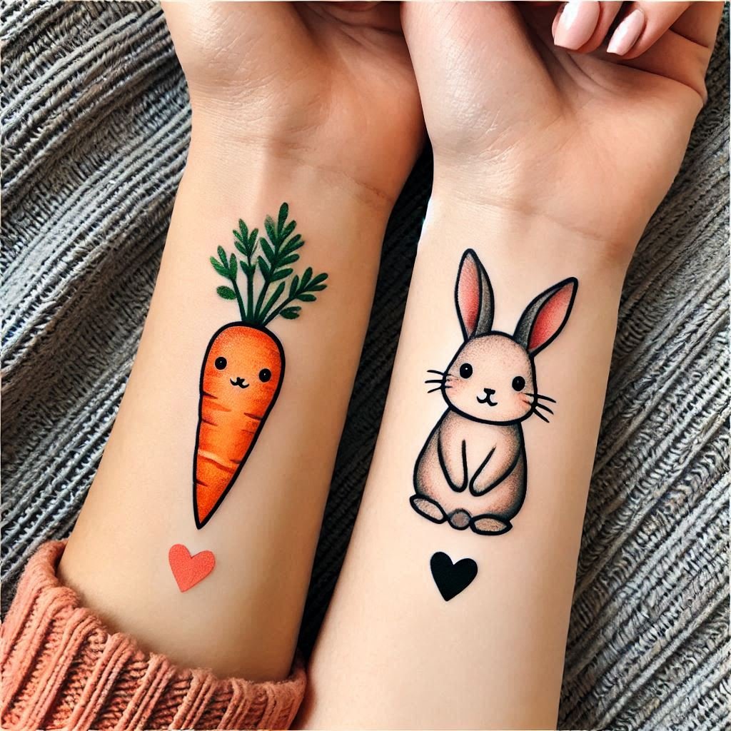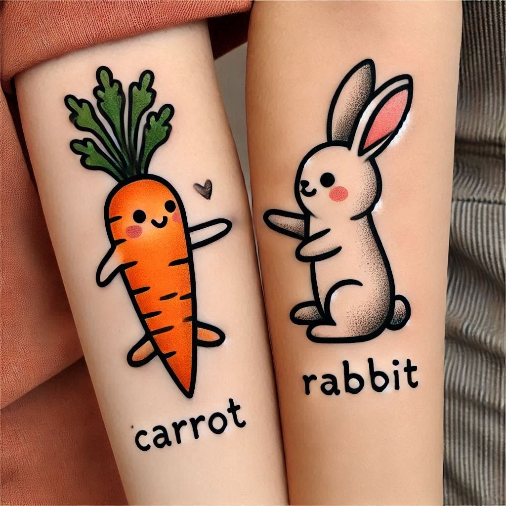 Tattoo Meaning: The carrot and rabbit symbolize a fun and unique friendship where we complete each other—like a rabbit needs a carrot. It reminds me of the joy and laughter my best friend brings into my life.