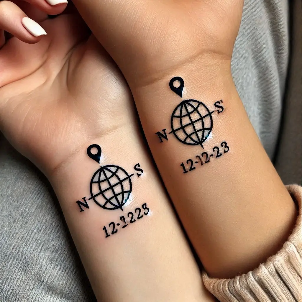 Tattoo Meaning: Coordinates are a unique way to symbolize the special places that mean something to you and your friend, like where you first met, where you both live, or a place you’ve both visited together.