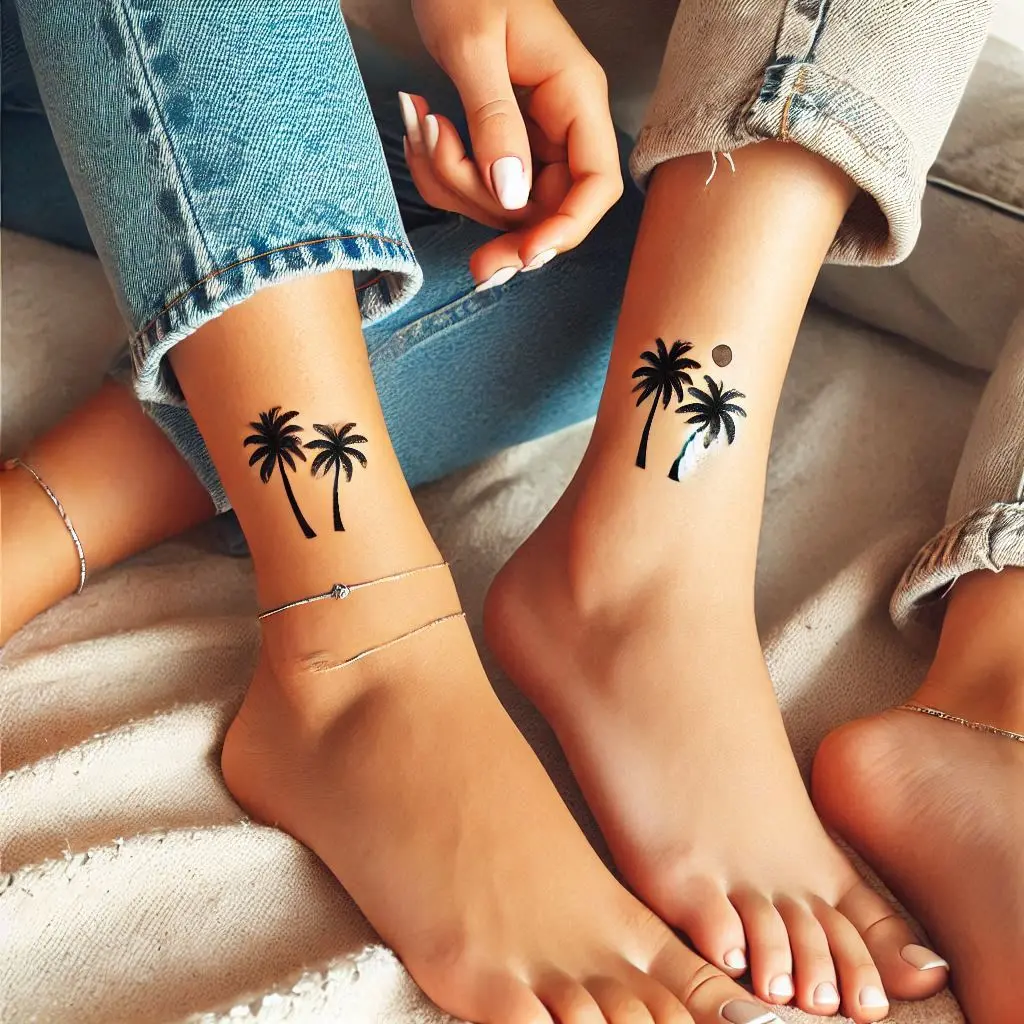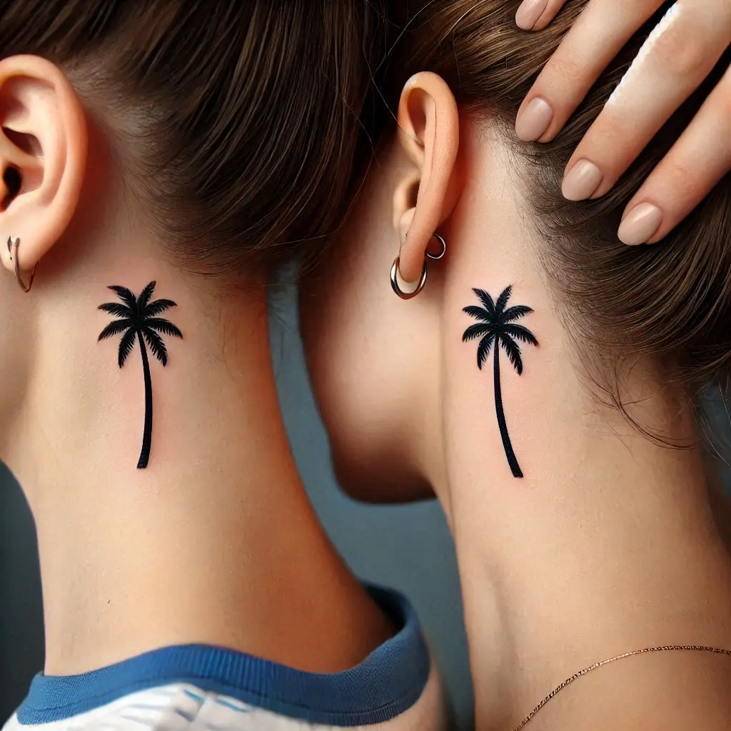 Tattoo Meaning: Palm trees symbolize relaxation, warmth, and freedom. A small palm tree tattoo represents the laid-back connection you share with your friend.