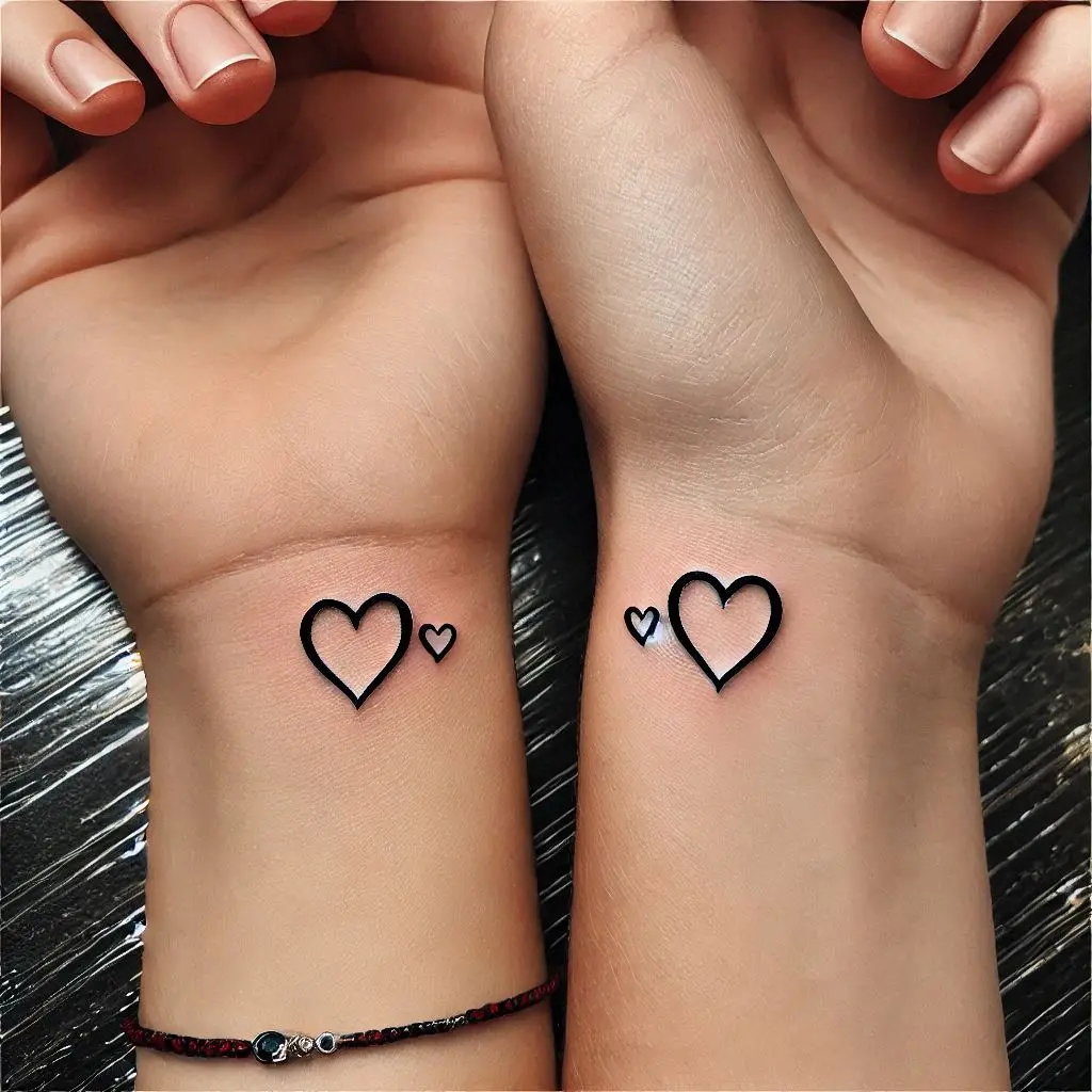 Tattoo Meaning: A small heart is a universal symbol of love and connection. Having a tiny heart tattoo on each of you signifies the love you share for one another, even from a distance.