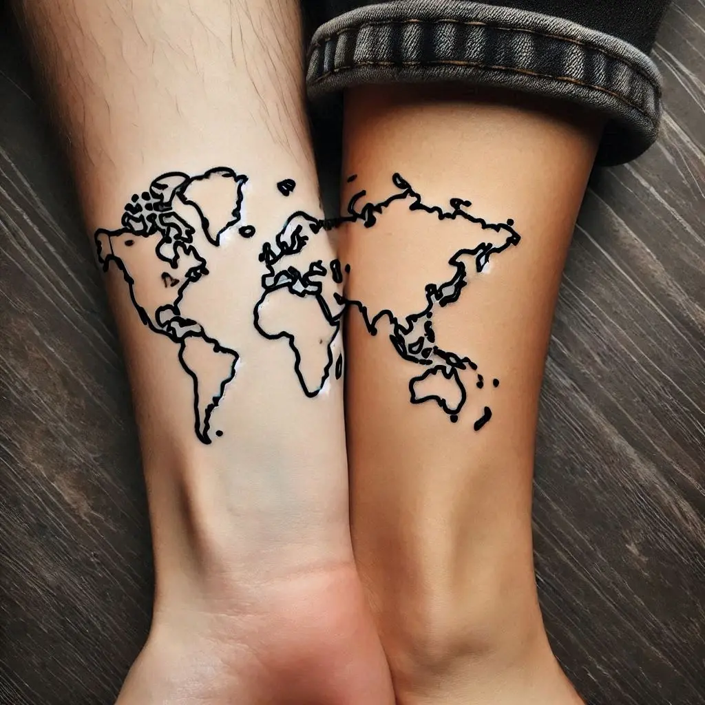 Tattoo Meaning: A small outline of a world map on each friend symbolizes how your worlds are connected despite the distance.