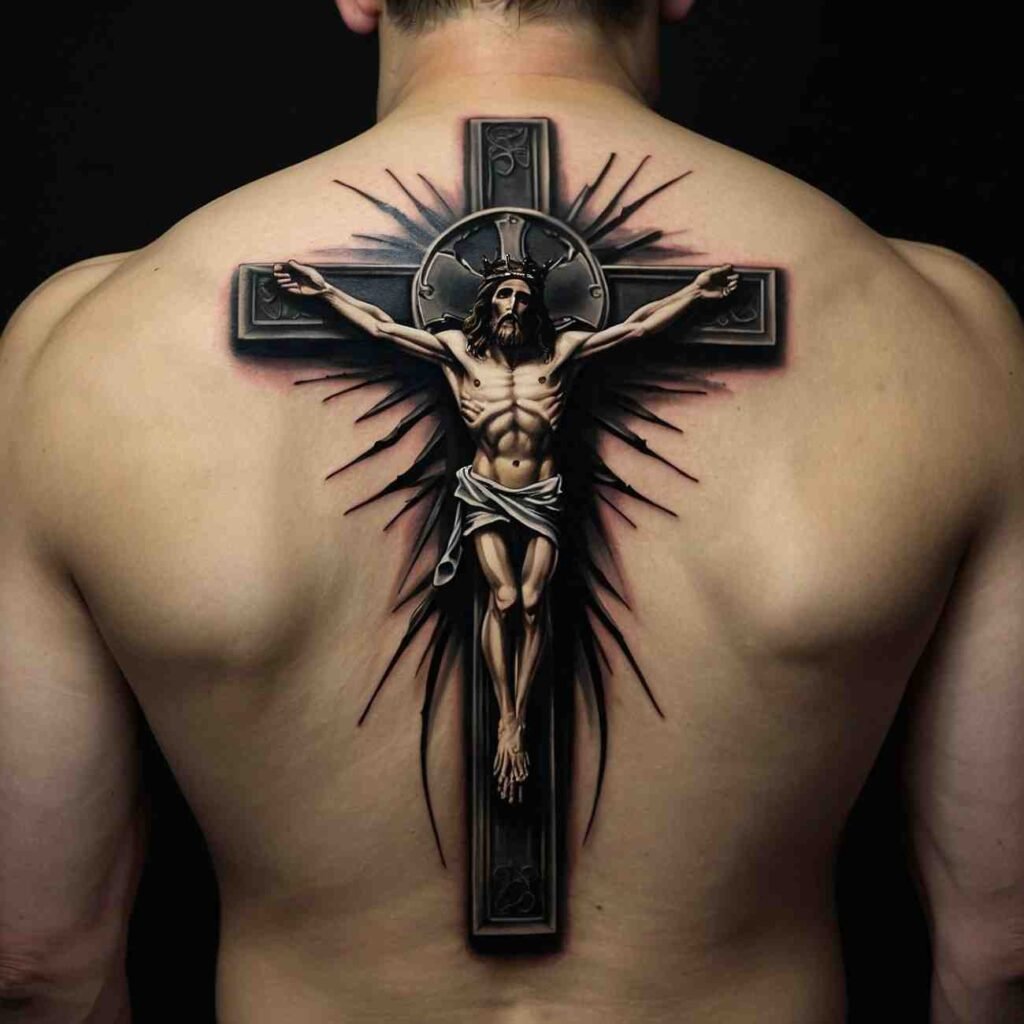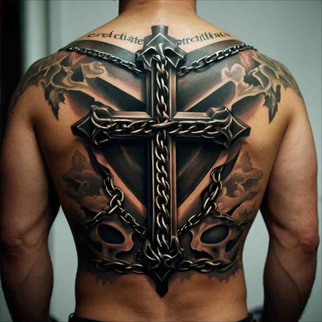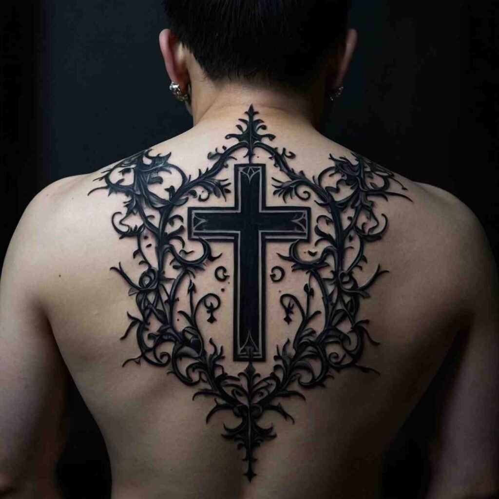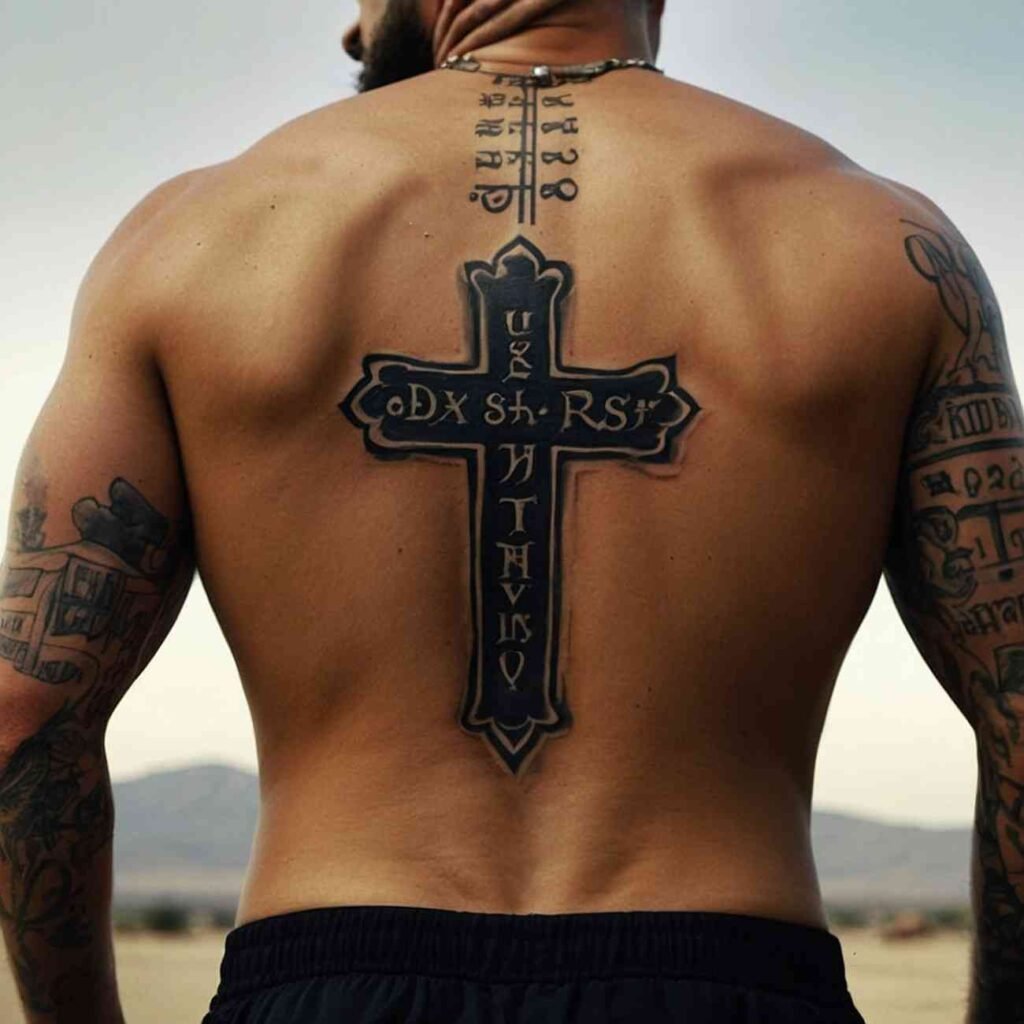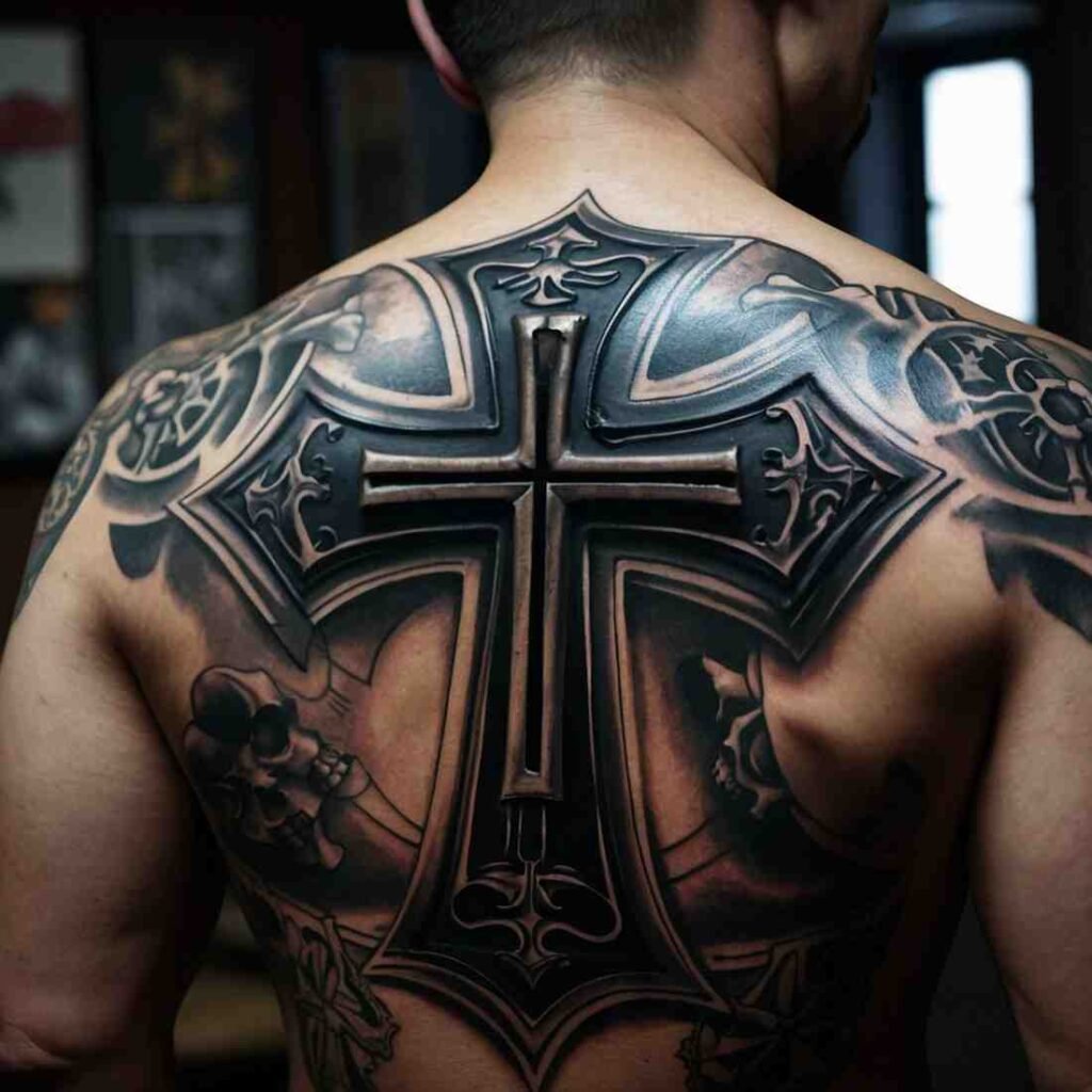 Let’s explore some incredible back cross tattoo designs for men that carry deep meaning.