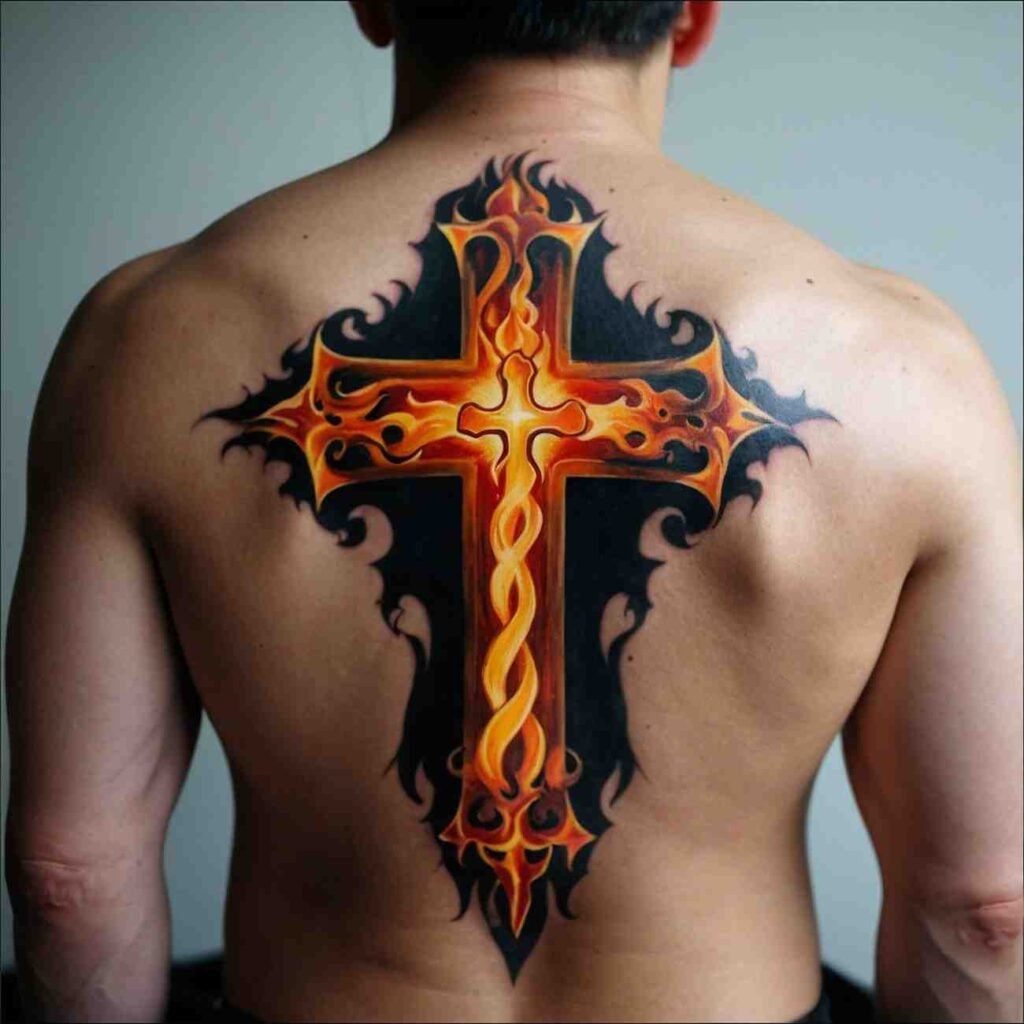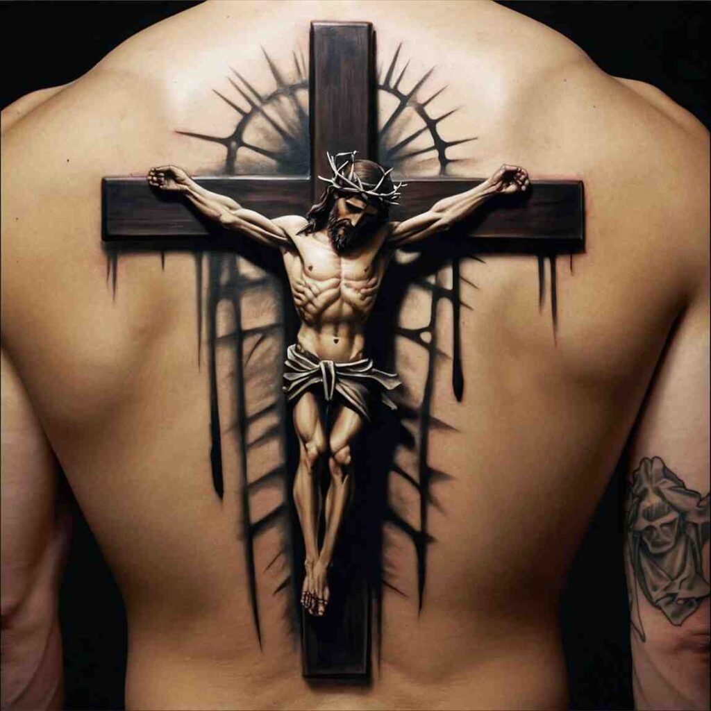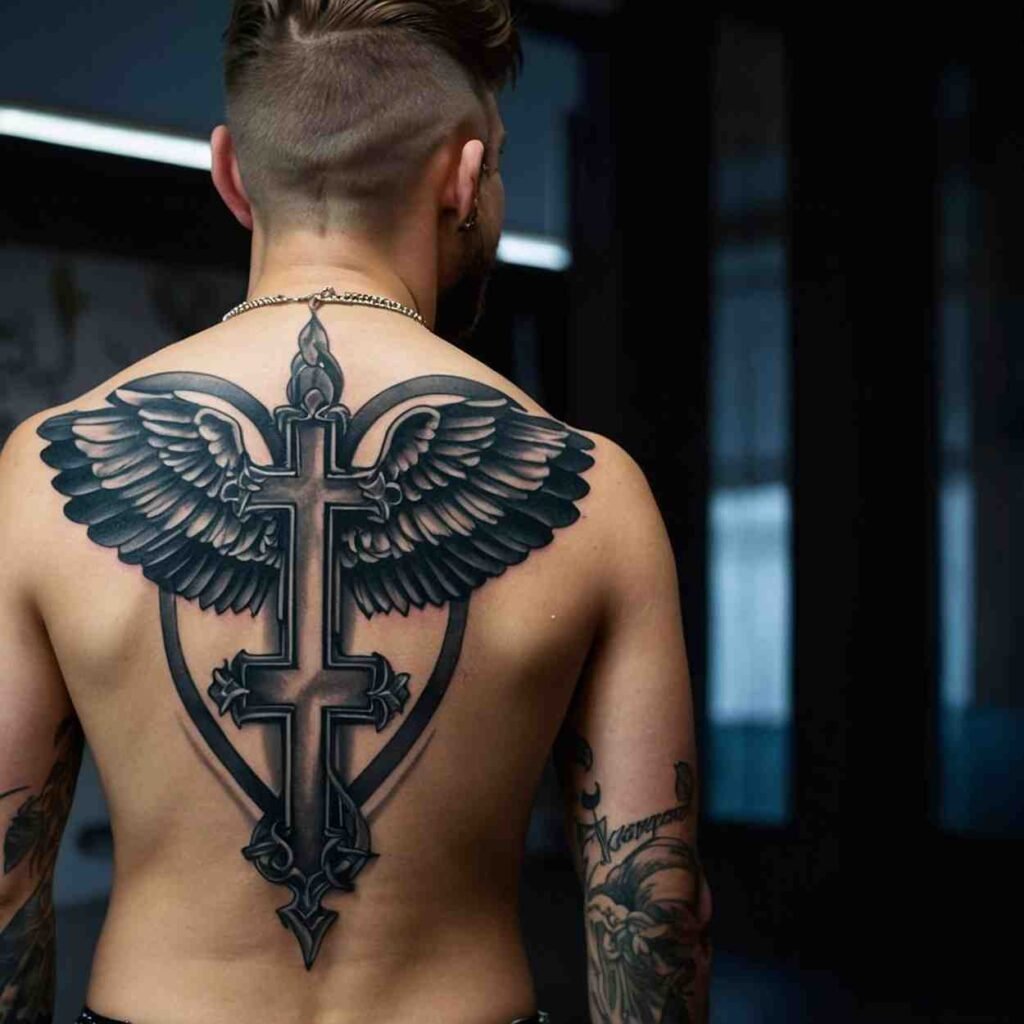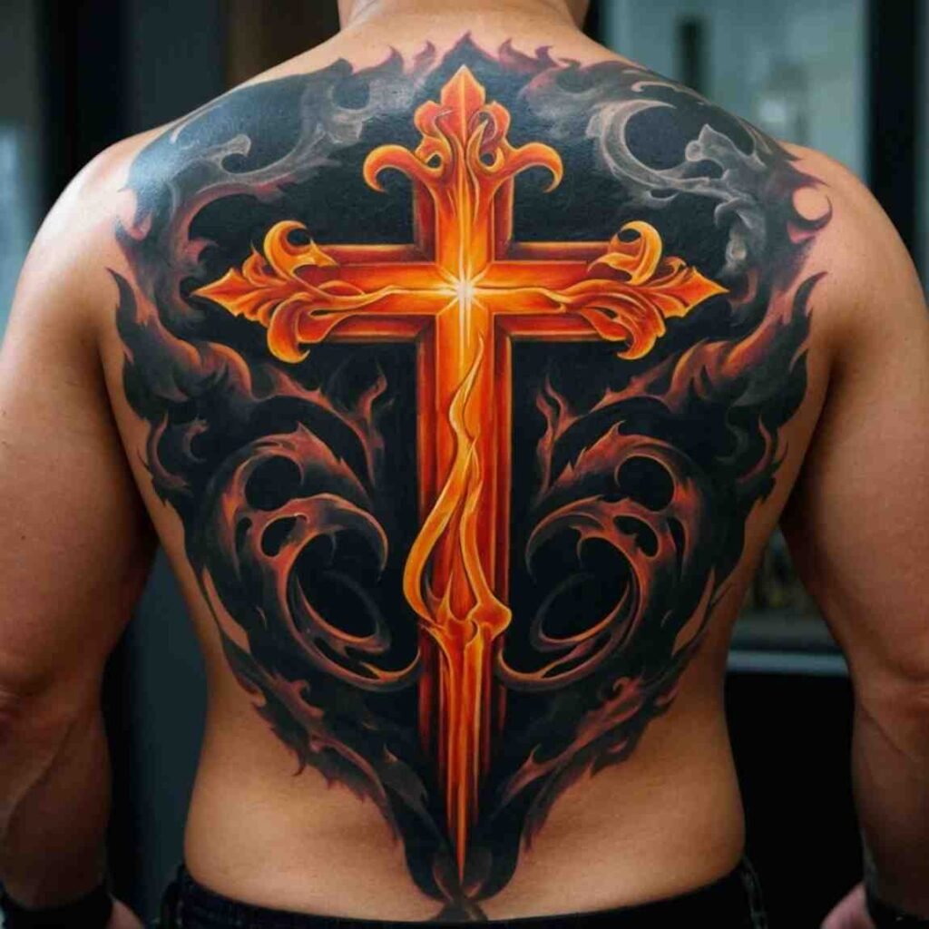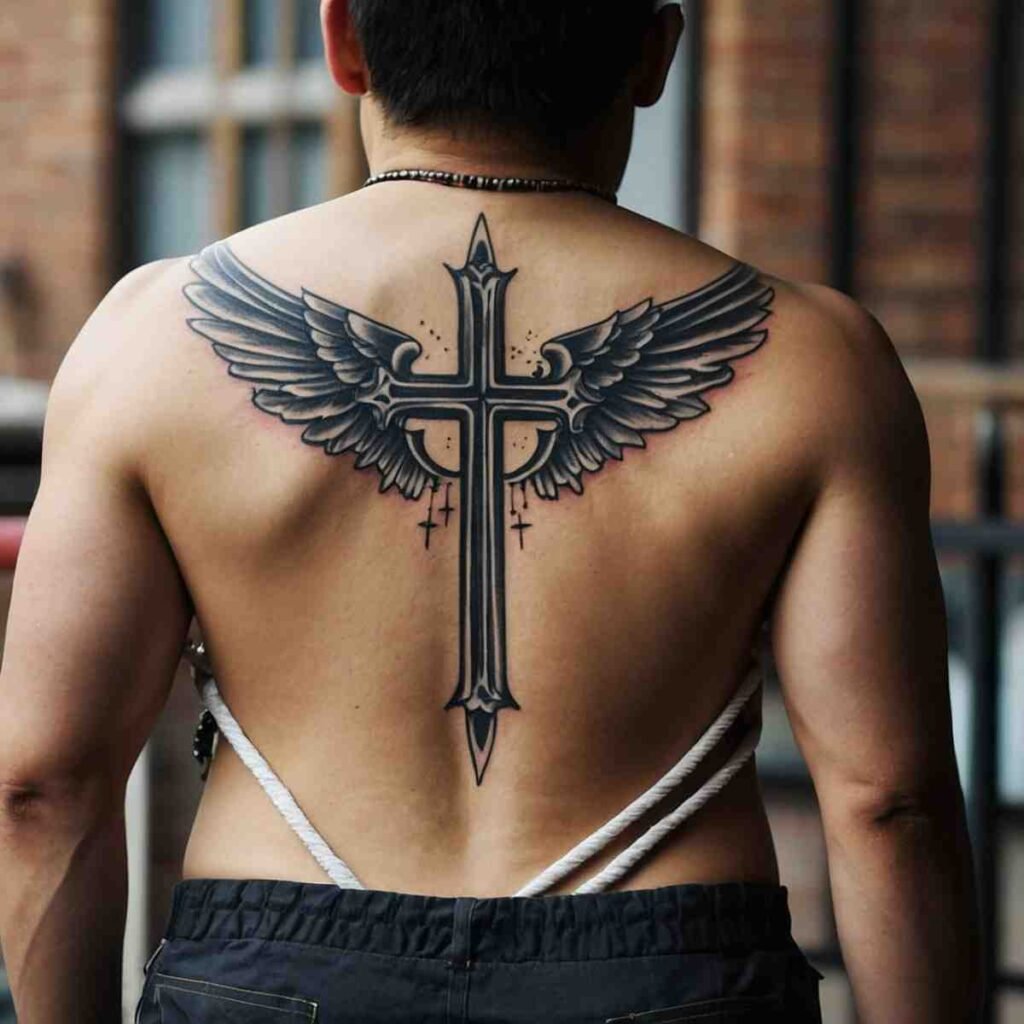 Let’s explore some incredible back cross tattoo designs for men that carry deep meaning.