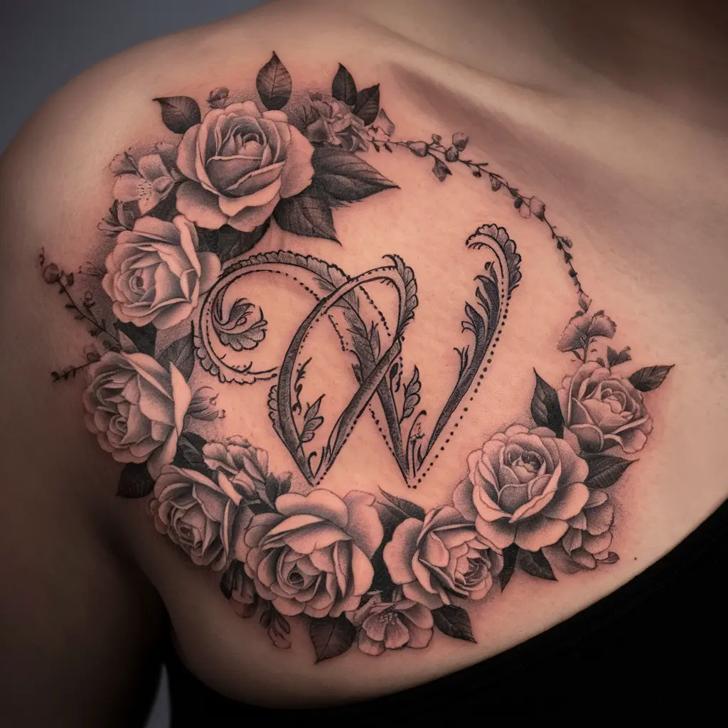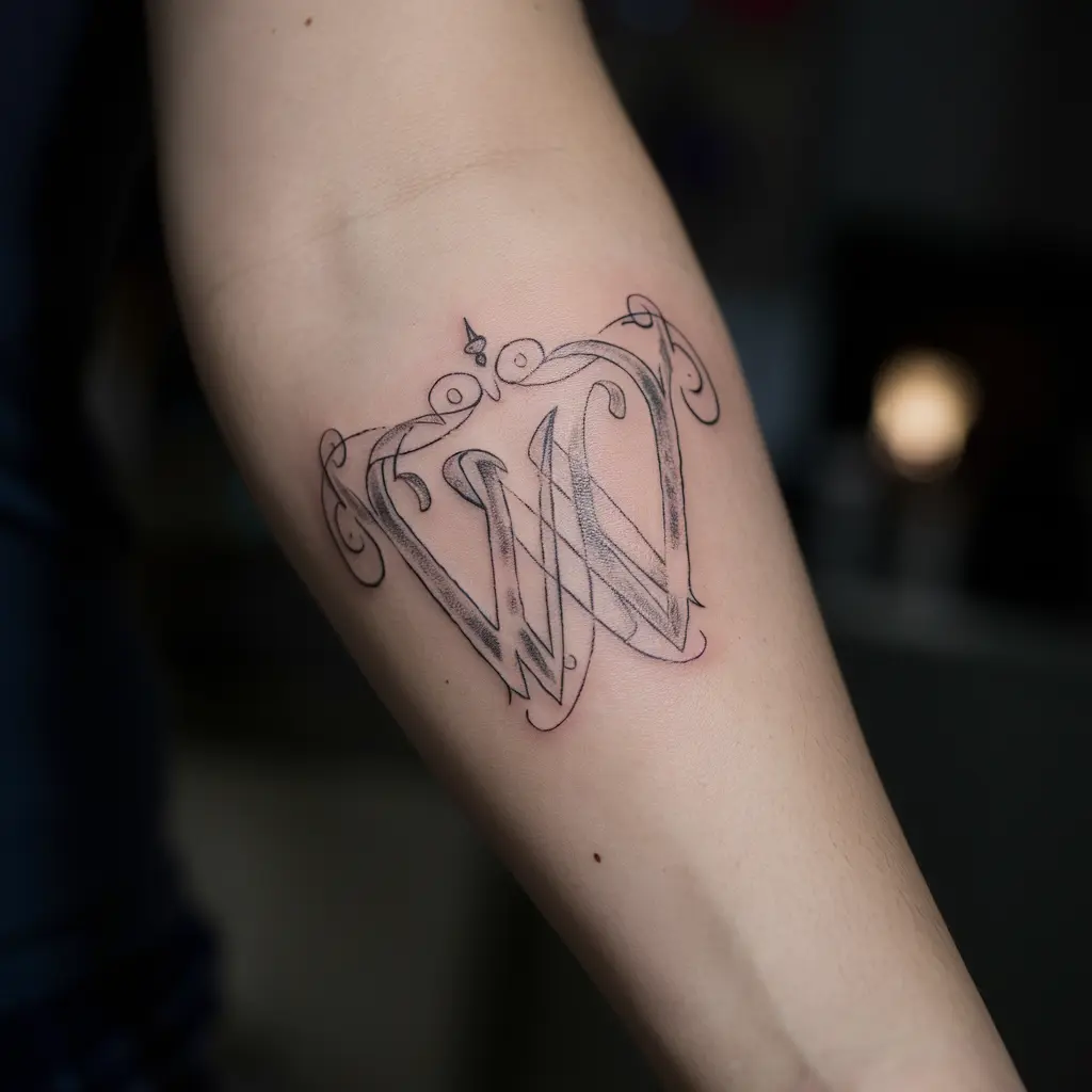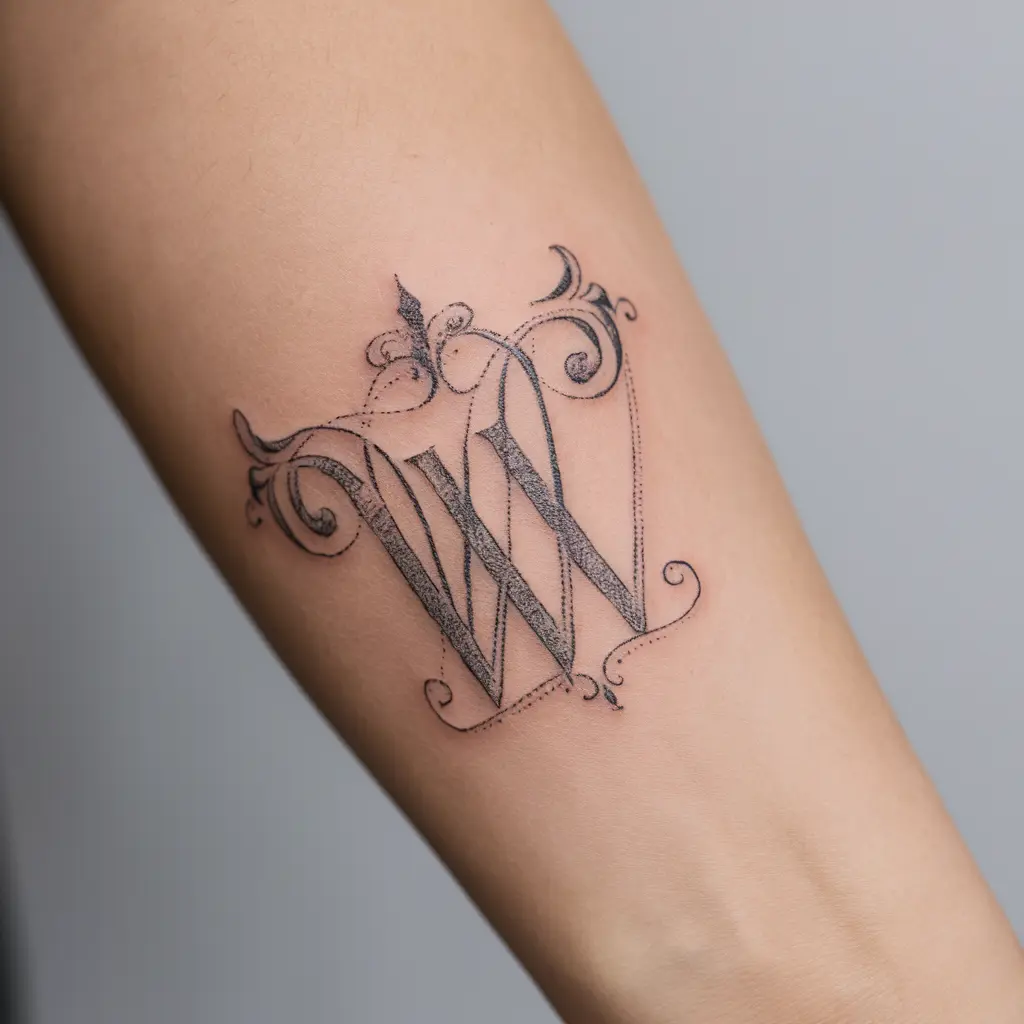 Monogram tattoos are classic and timeless. A monogram “W” tattoo is typically more formal, often created using calligraphy or ornate fonts. It can be a symbol of your initials or even a loved one’s name, making it deeply personal.