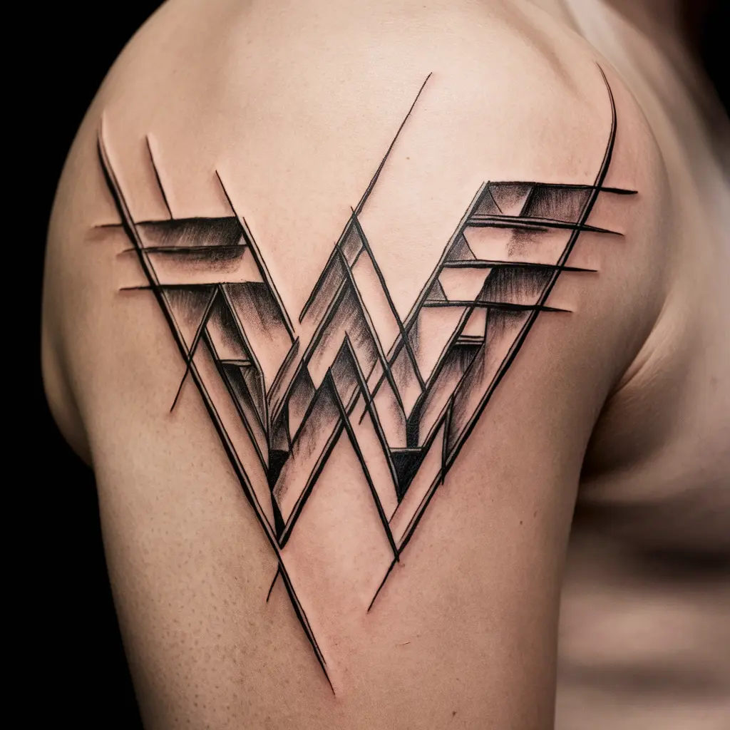 For those who enjoy modern art and structure, a geometric “W” tattoo is perfect. It can incorporate sharp angles and clean lines to create a visually striking design. This tattoo can symbolize balance, order, and symmetry.