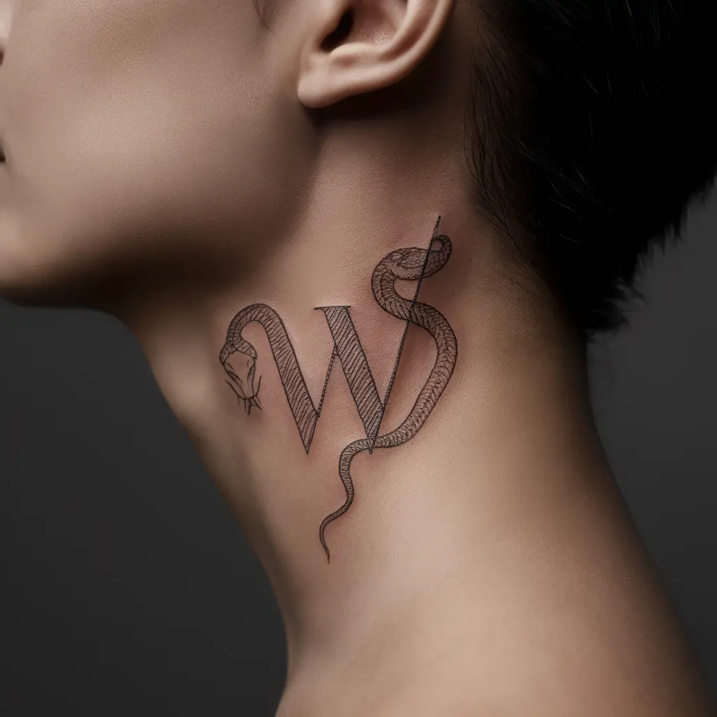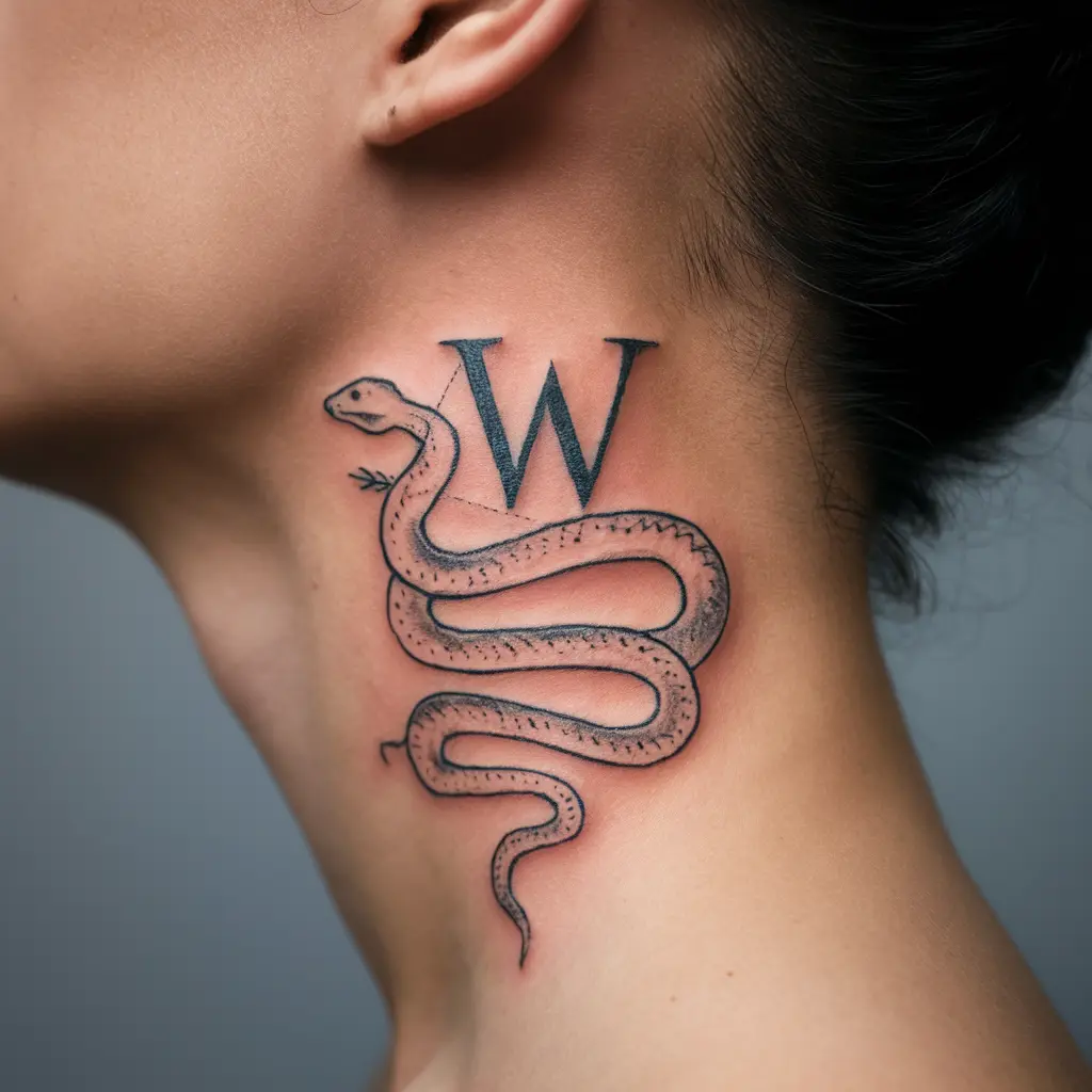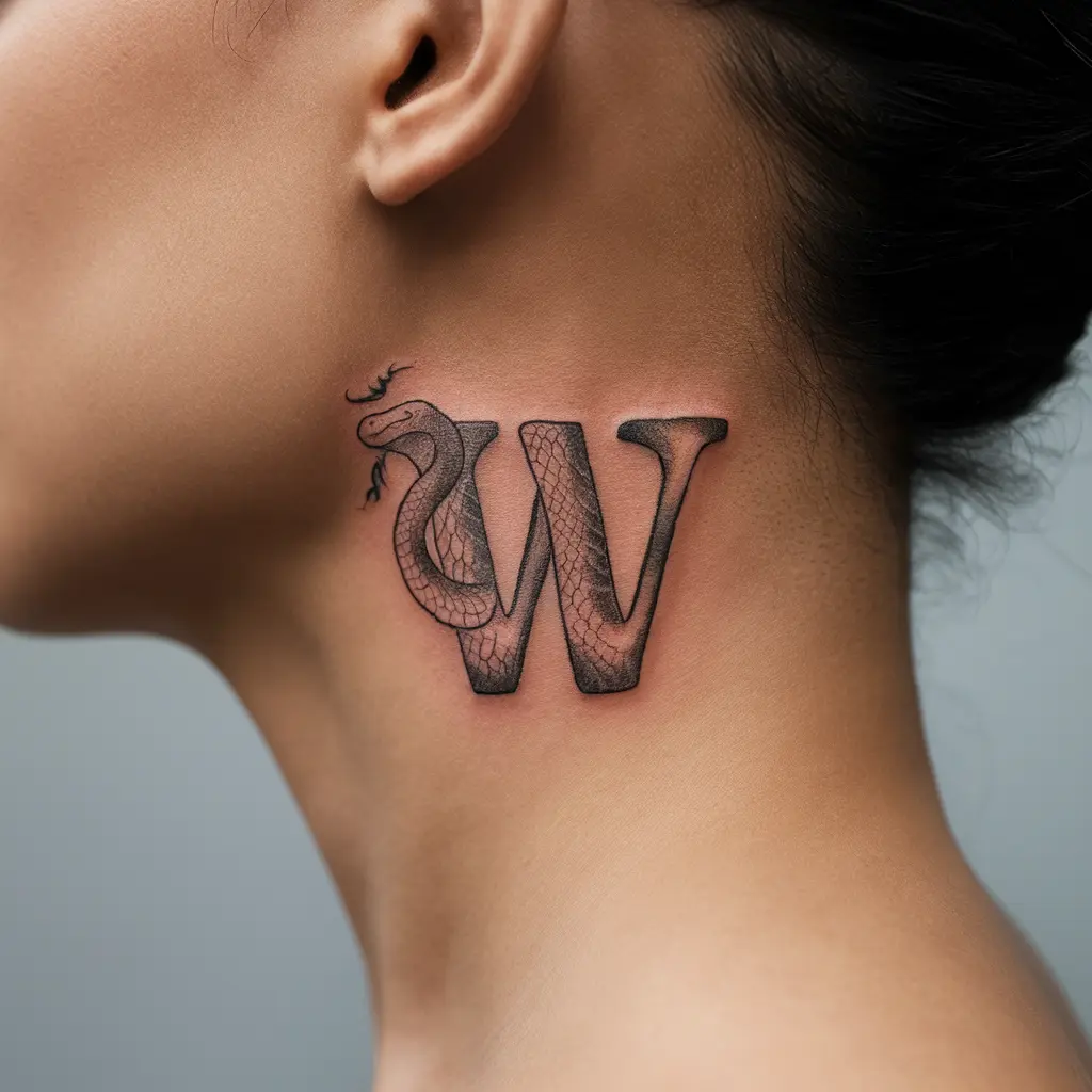 For a more edgy and symbolic tattoo, you might consider a snake wrapped around or through the “W.” Snakes represent transformation, healing, and rebirth, and they add a mystical, powerful element to your tattoo.