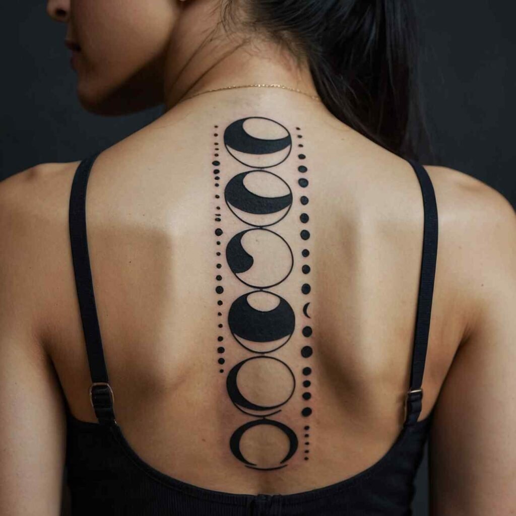 A moon phase tattoo symbolizes the cycles of life, growth, and change. Women who connect with nature or feel a strong connection to feminine energy often choose this design. The phases of the moon reflect personal development and the ups and downs of life. You can get a small, minimalistic design on the wrist or a detailed one running down the spine. It’s perfect for those who embrace change and seek balance in life. The moon’s quiet strength is a powerful reminder to trust your journey.