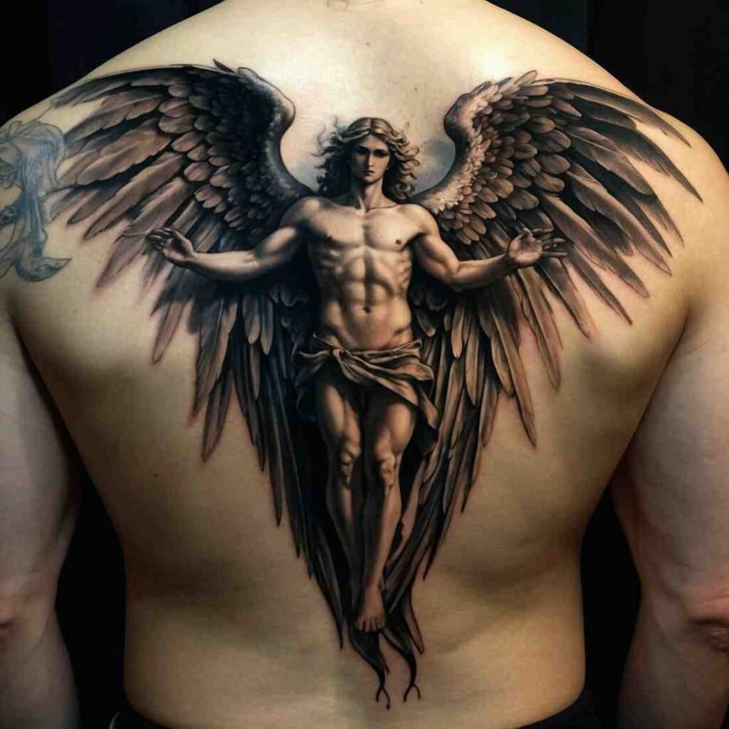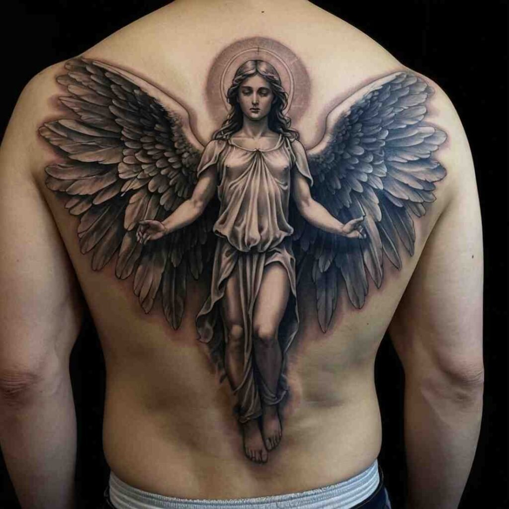 Angels represent divine guidance and protection in Catholic tradition. An angel tattoo can symbolize faith, hope, and spiritual guardianship. Whether depicted as a guardian angel with large wings or a more serene figure, this tattoo reminds wearers that they are never alone and are watched over by a higher power.