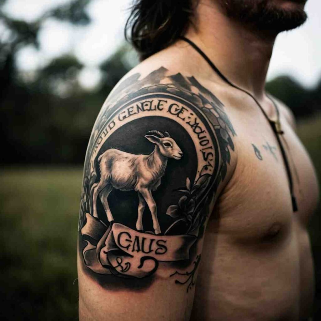 The Lamb of God, or “Agnus Dei,” is a symbol of Jesus’ sacrifice for the sins of humanity. A lamb tattoo often includes a banner with the words “Agnus Dei” or a cross above the lamb. This tattoo reminds wearers of Christ’s gentle yet powerful nature and the ultimate sacrifice he made for mankind.