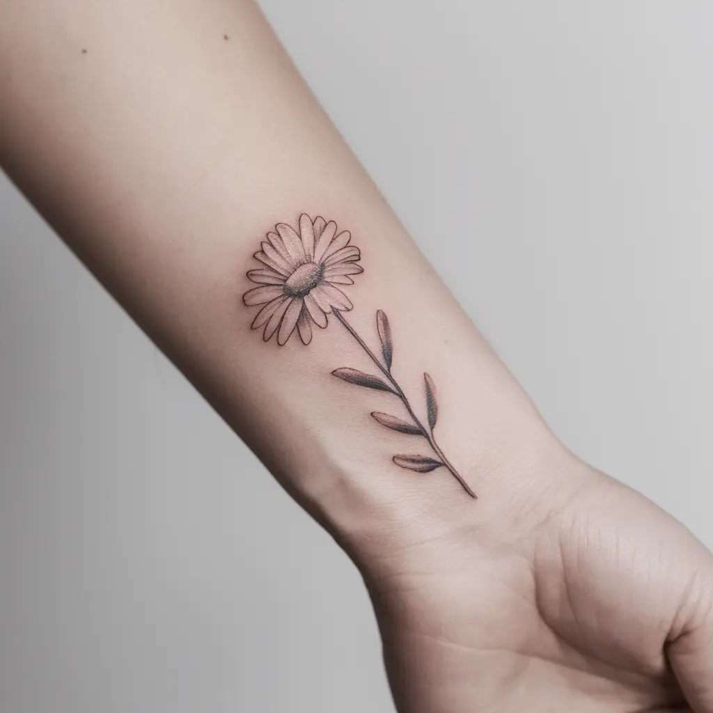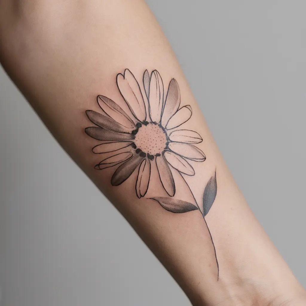 A single daisy stem tattoo is a minimalist design that lets the beauty of the flower speak for itself. This tattoo often focuses on the delicate lines of the stem and petals, keeping everything clean and simple.