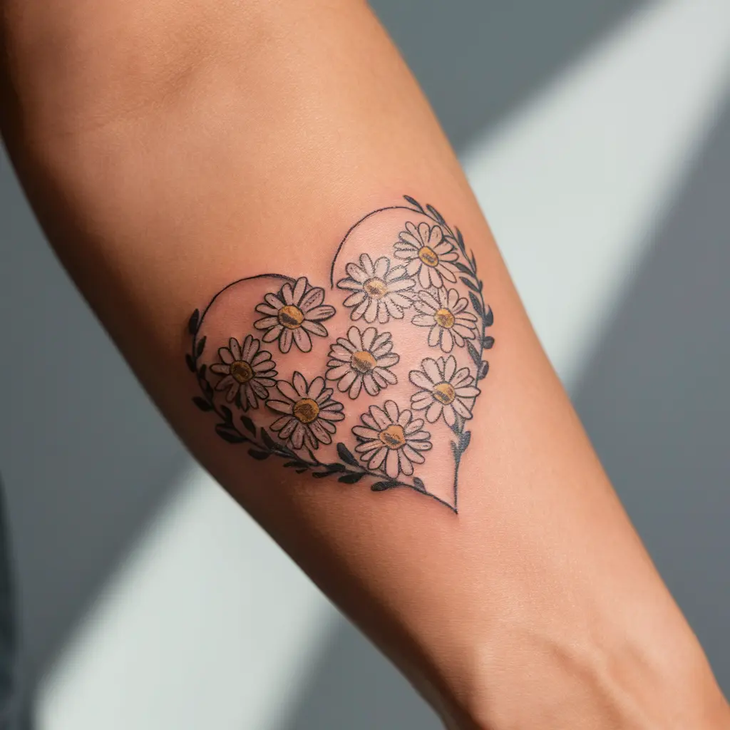 A daisy tattoo arranged in the shape of a heart is a sweet and sentimental design. It’s a perfect way to combine love and nature in a subtle yet powerful way.