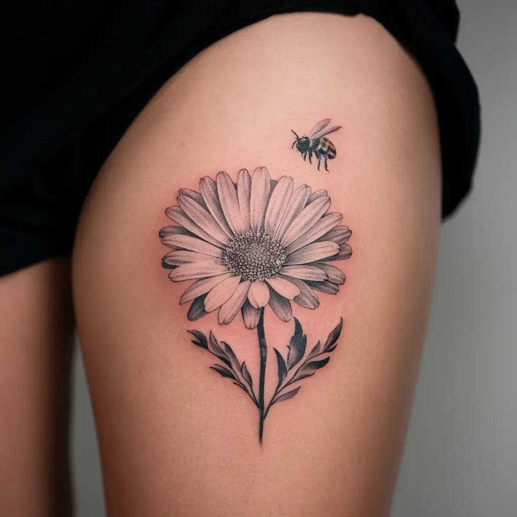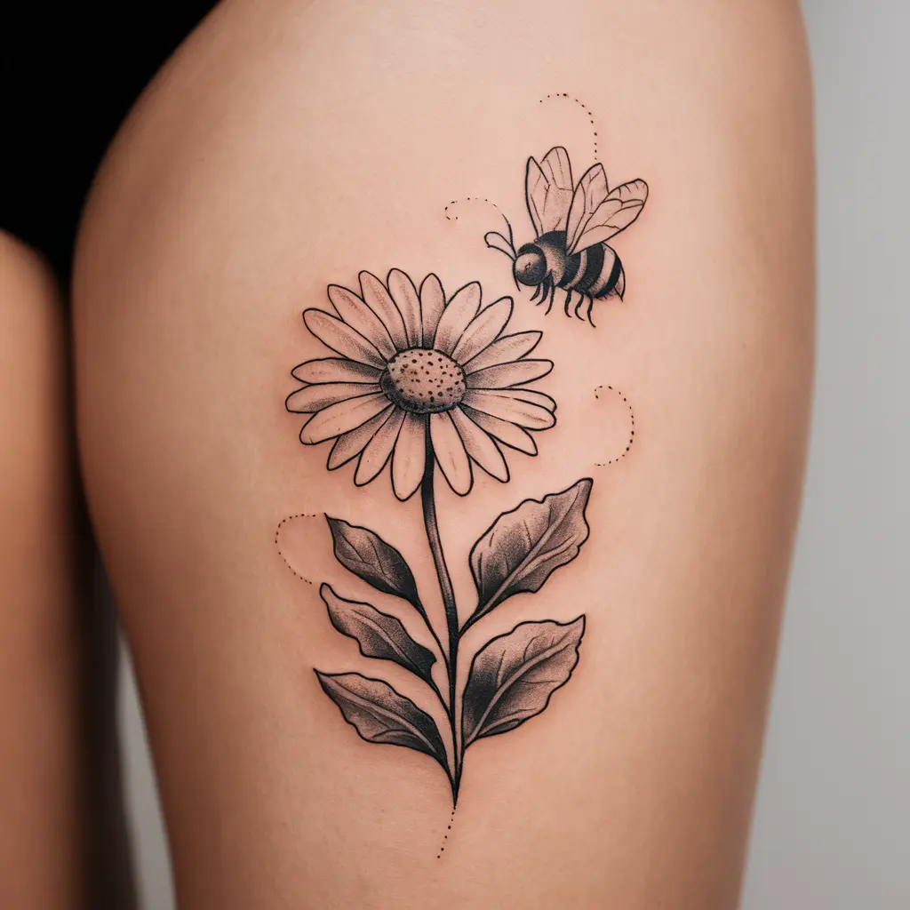 A daisy and bee tattoo can symbolize the beauty of nature and the hardworking spirit of the bee. The daisy represents new beginnings, while the bee embodies dedication and purpose.