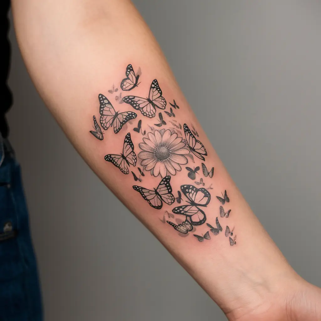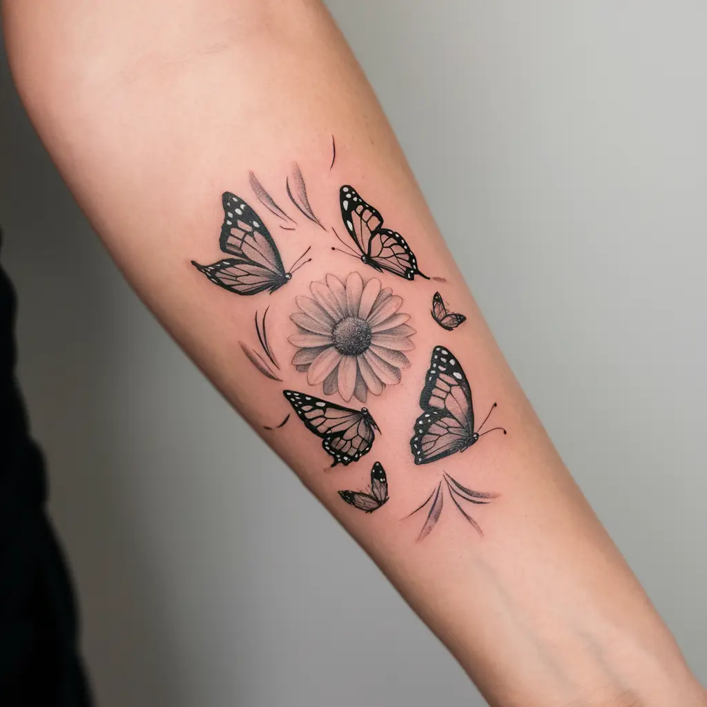 A daisy and butterfly tattoo is a beautiful design that captures both nature and transformation. The butterfly symbolizes change and freedom, while the daisy brings purity and new beginnings.
