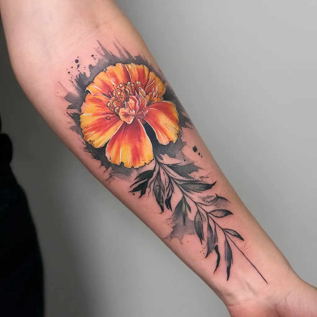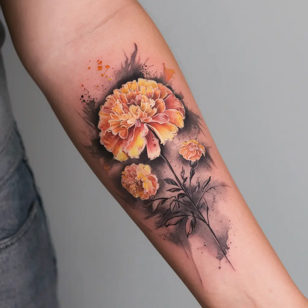 If you want something vibrant and full of life, a watercolor marigold tattoo is a stunning choice. The bold colors of marigolds, painted in soft watercolor strokes, create a beautiful, almost fluid effect.