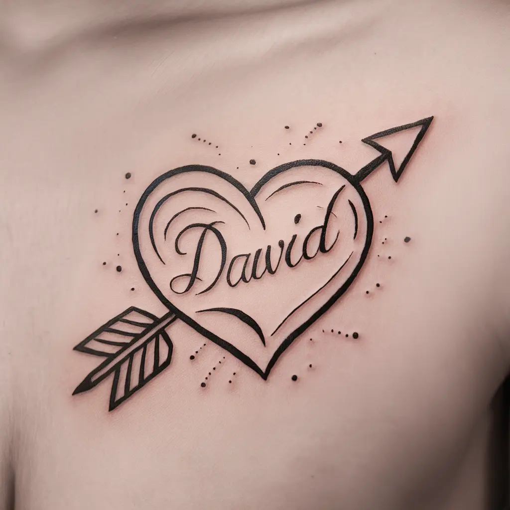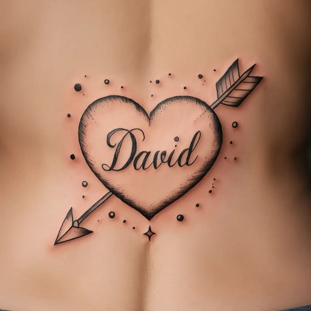 Imagine a small heart with “David” written inside and pierced by a cupid’s arrow.