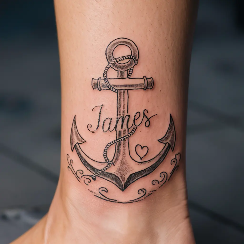 An anchor tattoo with James’ name incorporated into the base of the anchor. Add small waves or a heart for a touch of creativity.