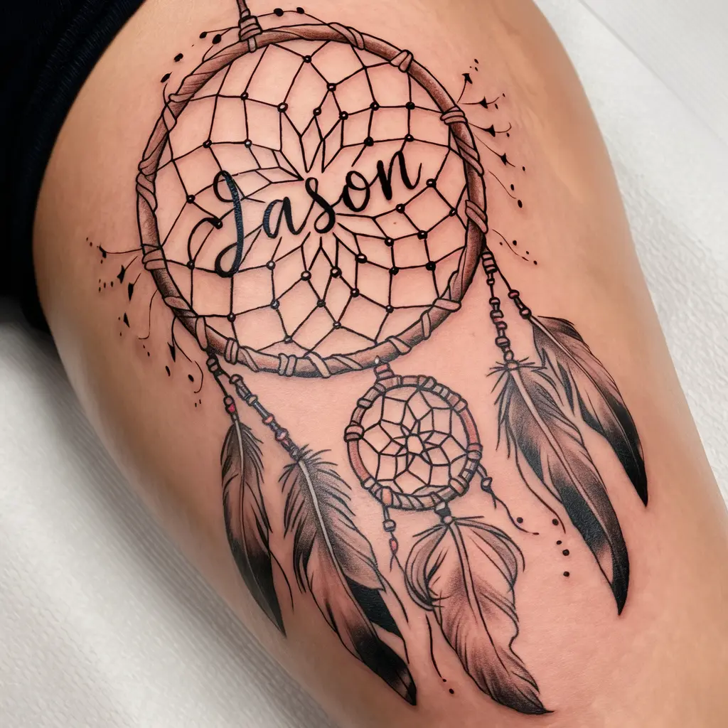 Jason’s name can be placed in the center of a dreamcatcher design, complete with delicate feathers hanging below.