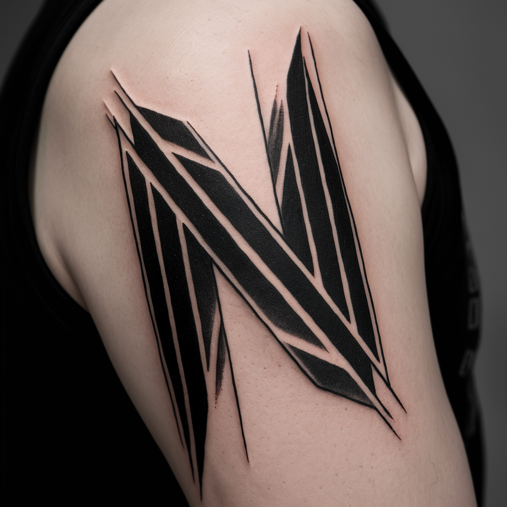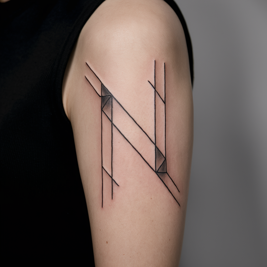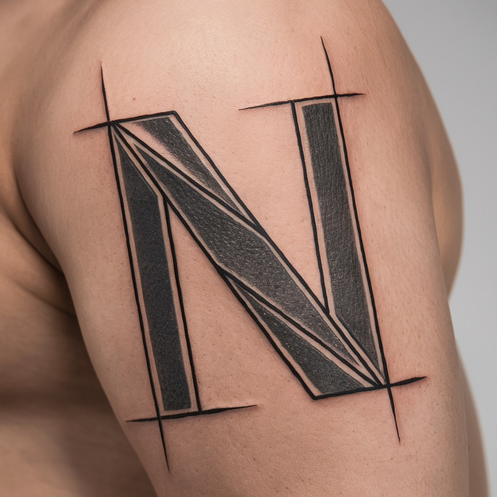 For those who appreciate structure and order, a geometric “N” tattoo is a perfect choice. This design incorporates straight lines, triangles, and angles to create a sharp, modern “N.”